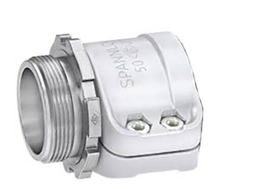 Elaflex gevindstuts type VC-VA med Spannloc-kappe. Studs i 1.4571 (316 TI). Spannloc spændkappe i aluminium og møtrikker og bolte i stål, rustbeskyttet.