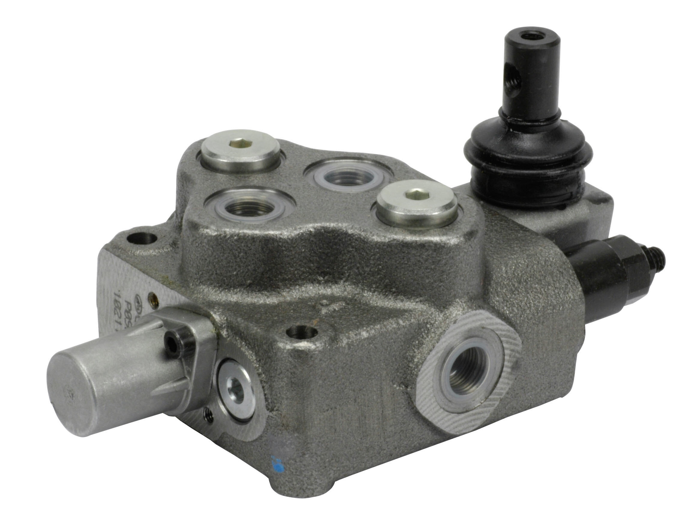 1-sektions SD5 monoblok retningsventil med indbygget trykbegrænsningsventil og een glider. Manuelt aktiveret med håndtag.