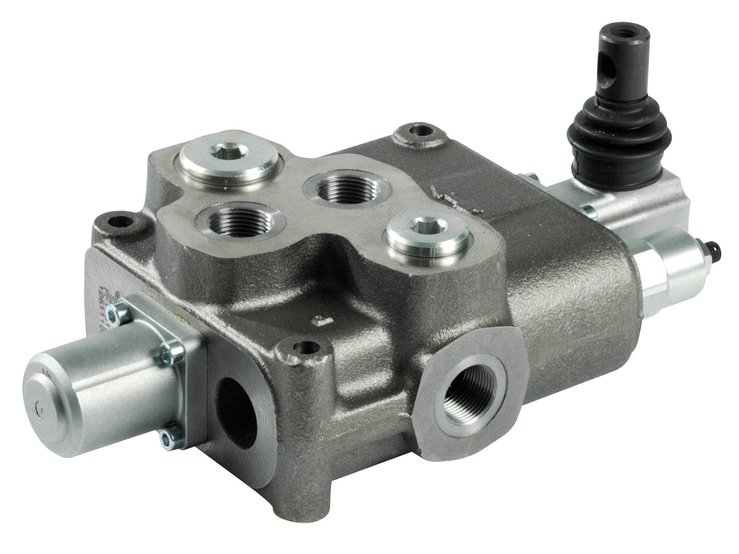1 section SD18 monoblock directional valve with built-in pressure relief valve and one spool, manually activated with hand lever.