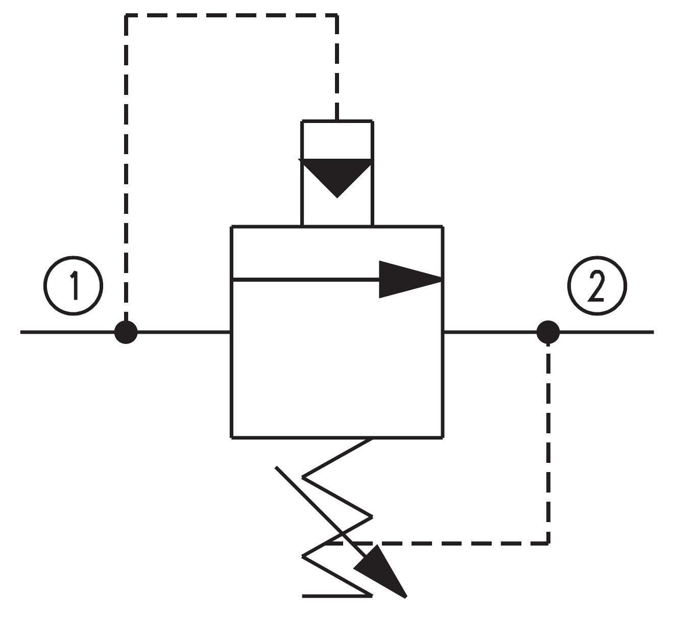 Cp211-2, Pilotstyret Denne ventil aflaster fra port 1 til 2 og er en pilotstyret spool-type aflastningsventil.