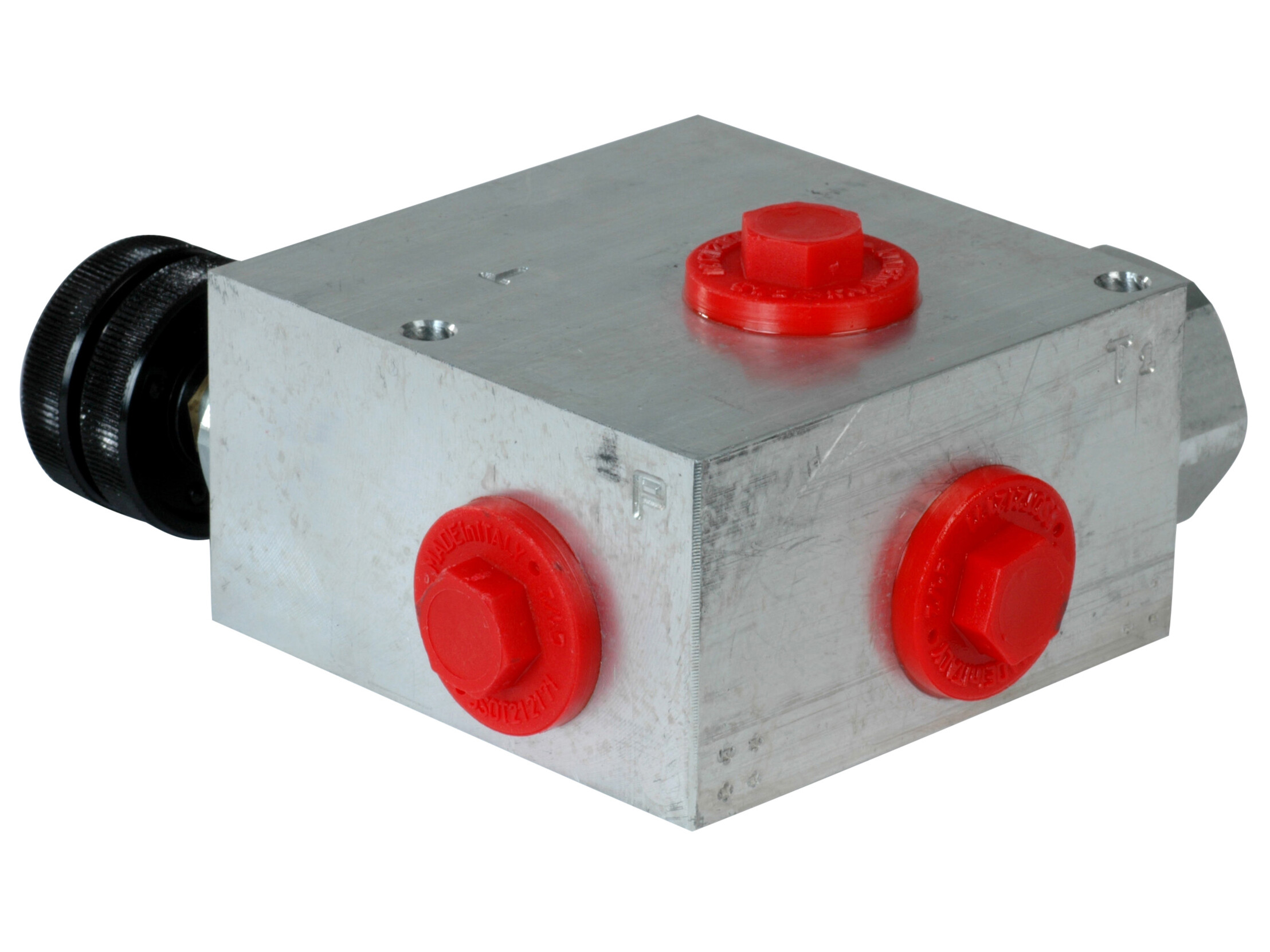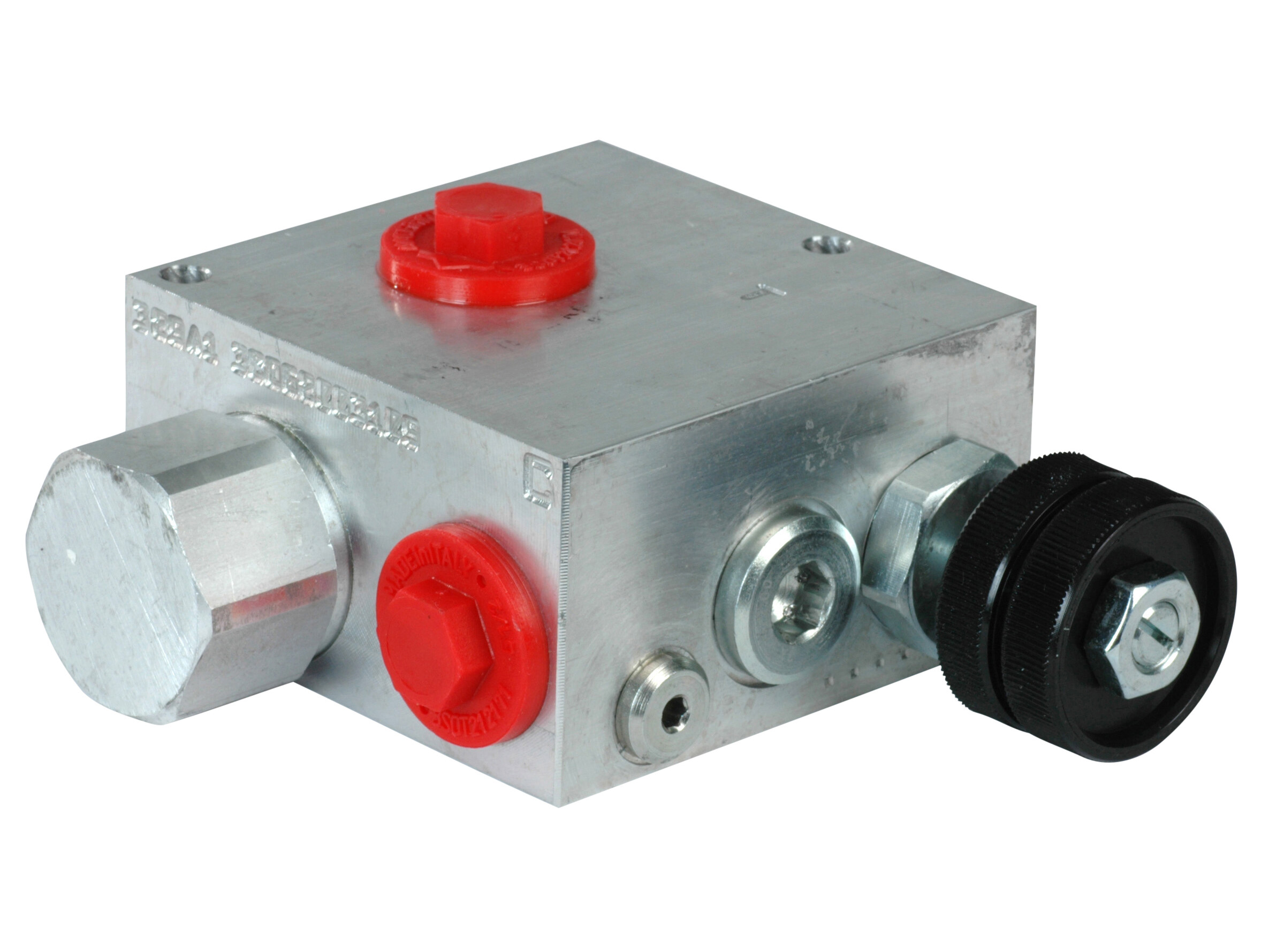 3-vejs trykkompenseret mængdedelerventil. Ventilblok udført i aluminium.
