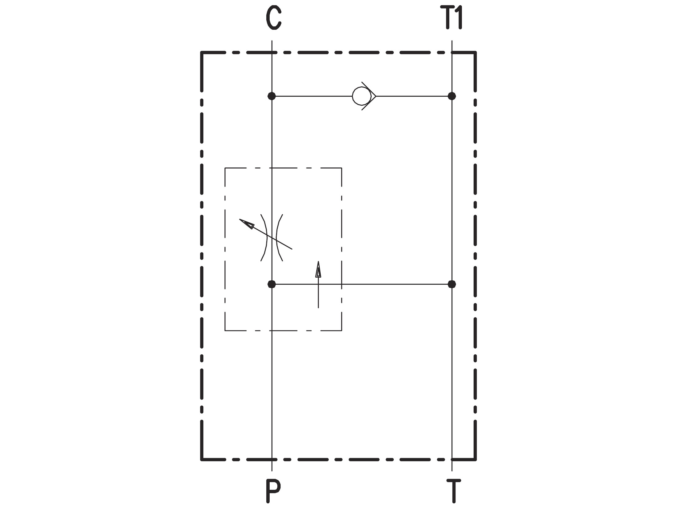 Portbenævnelser: E: Indgang. C: Konstant (reguleret) mængde. R: Overskydende mængde.