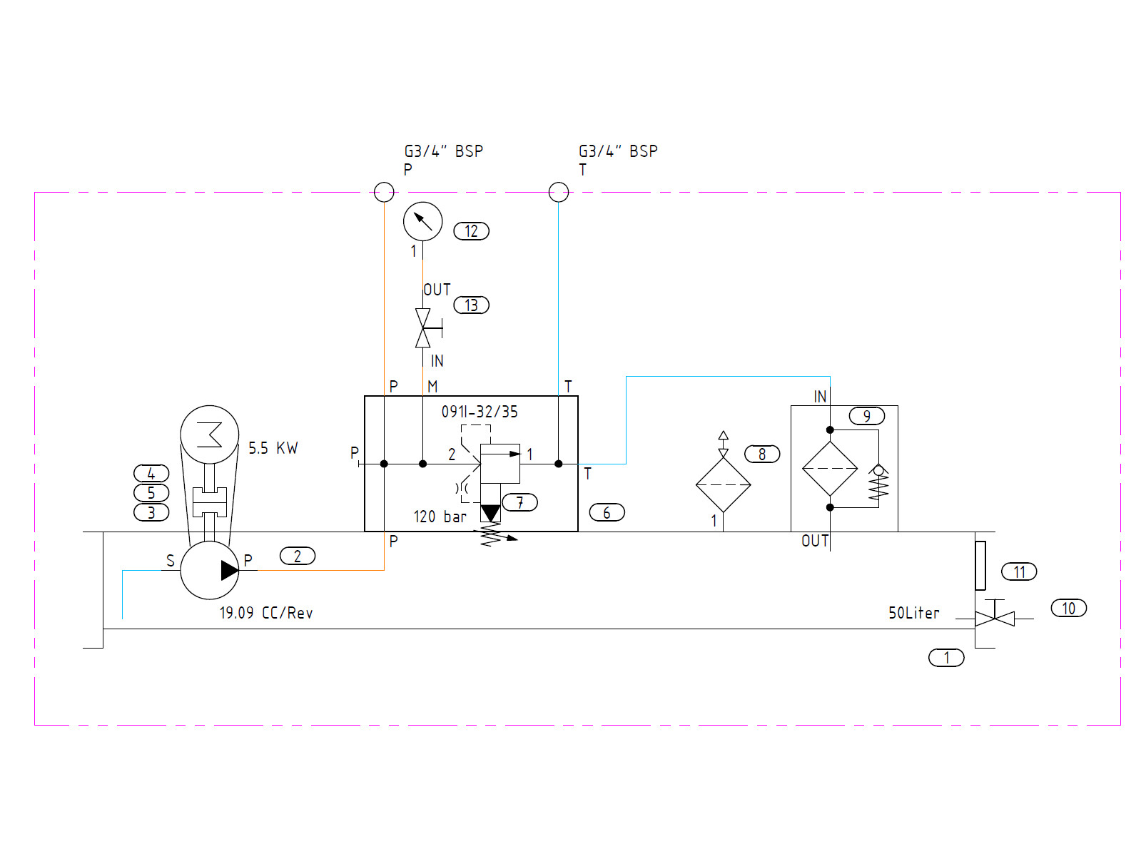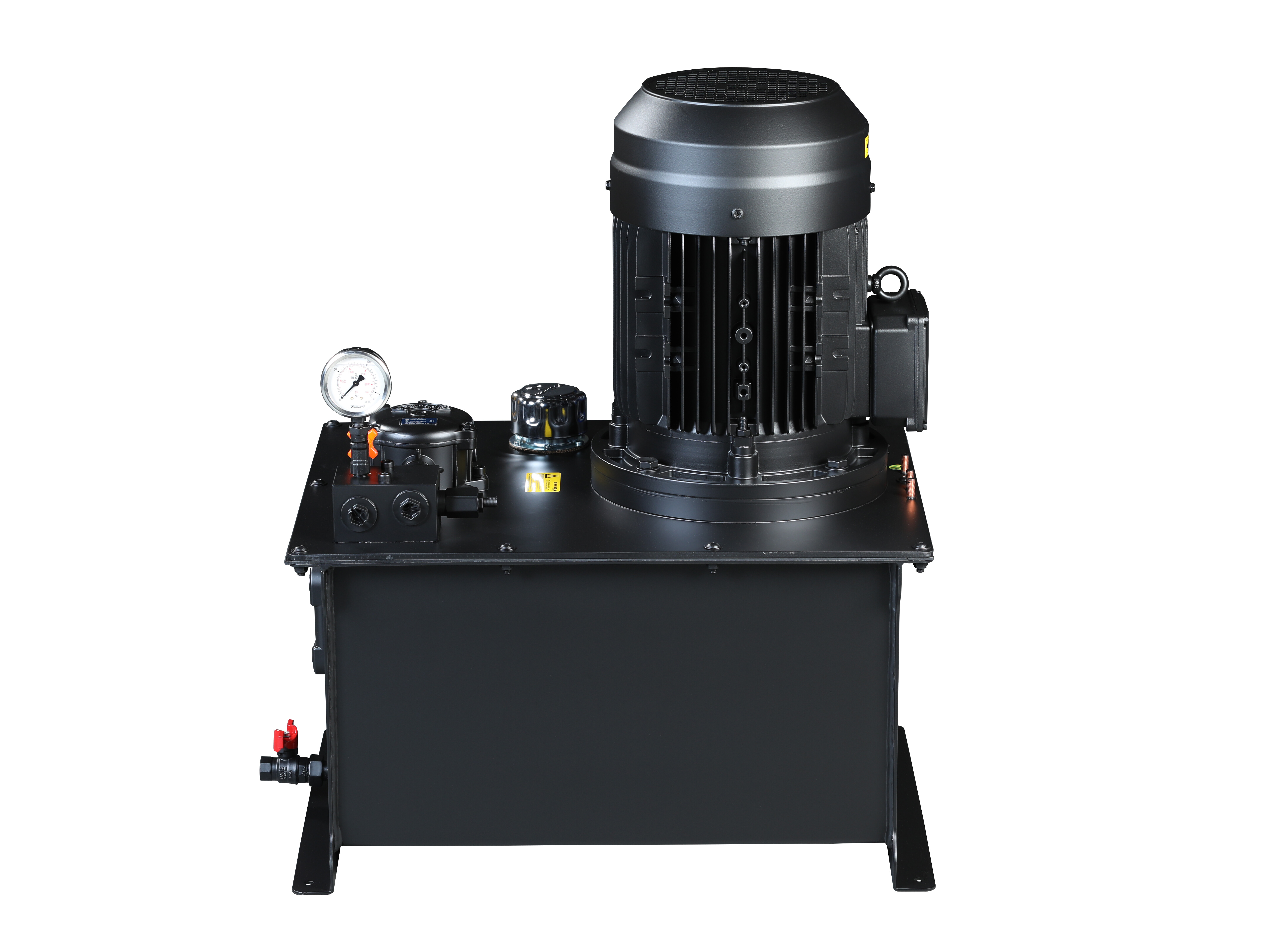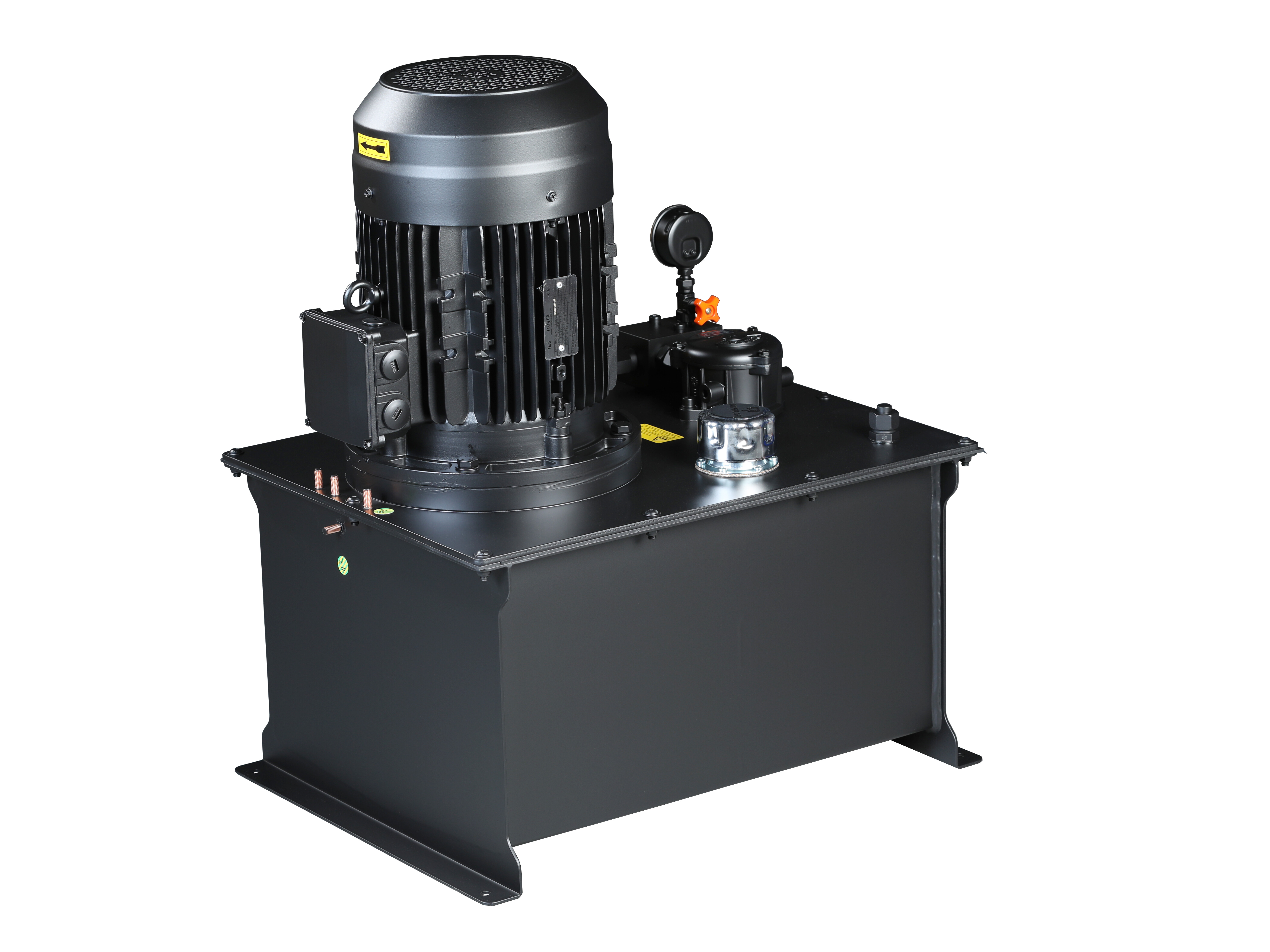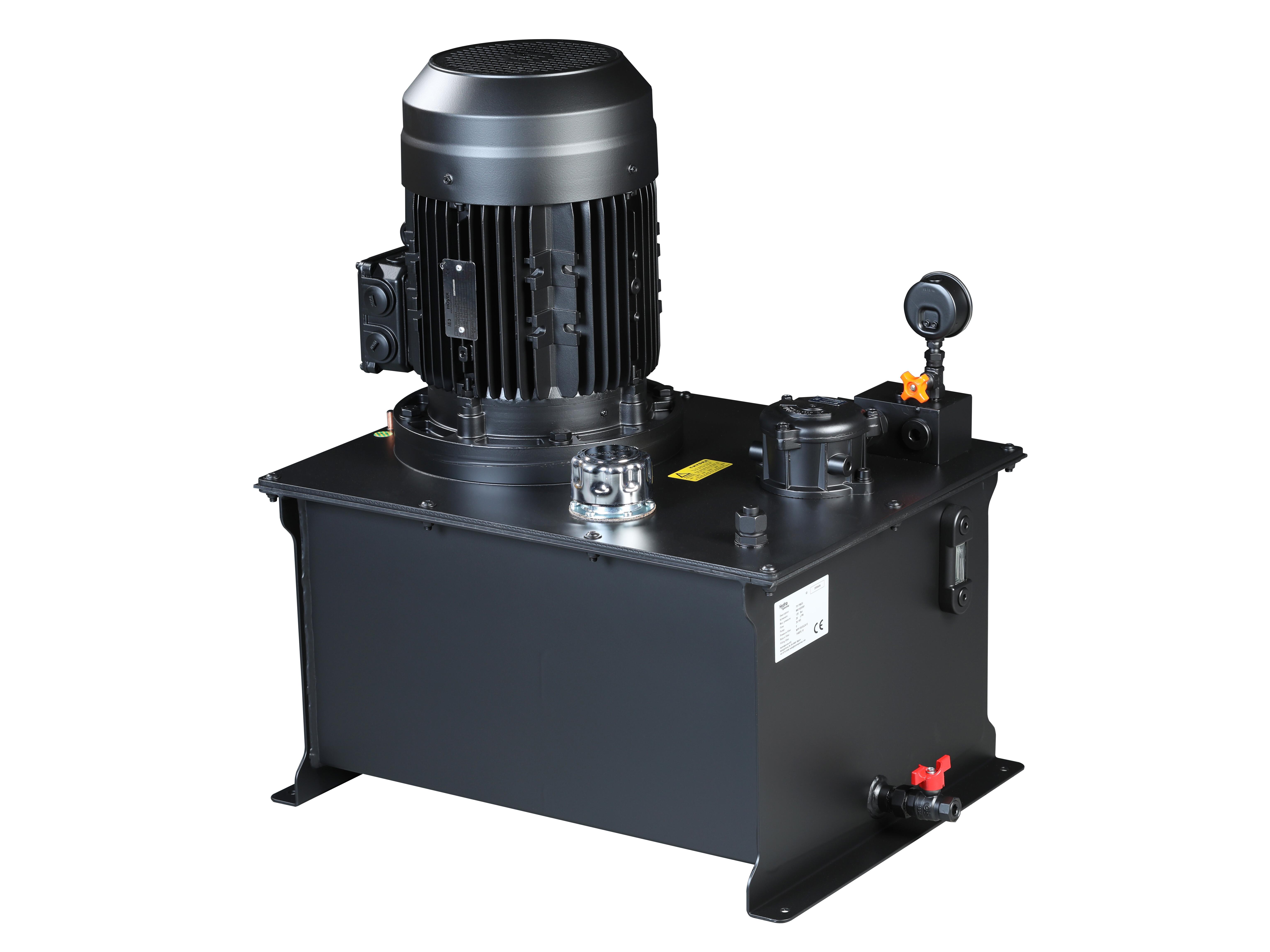 Pumpestationerne opbygges ud fra standardkomponenter: Motor, pumper, tank med filtre og trykbegrænsningsventiler.