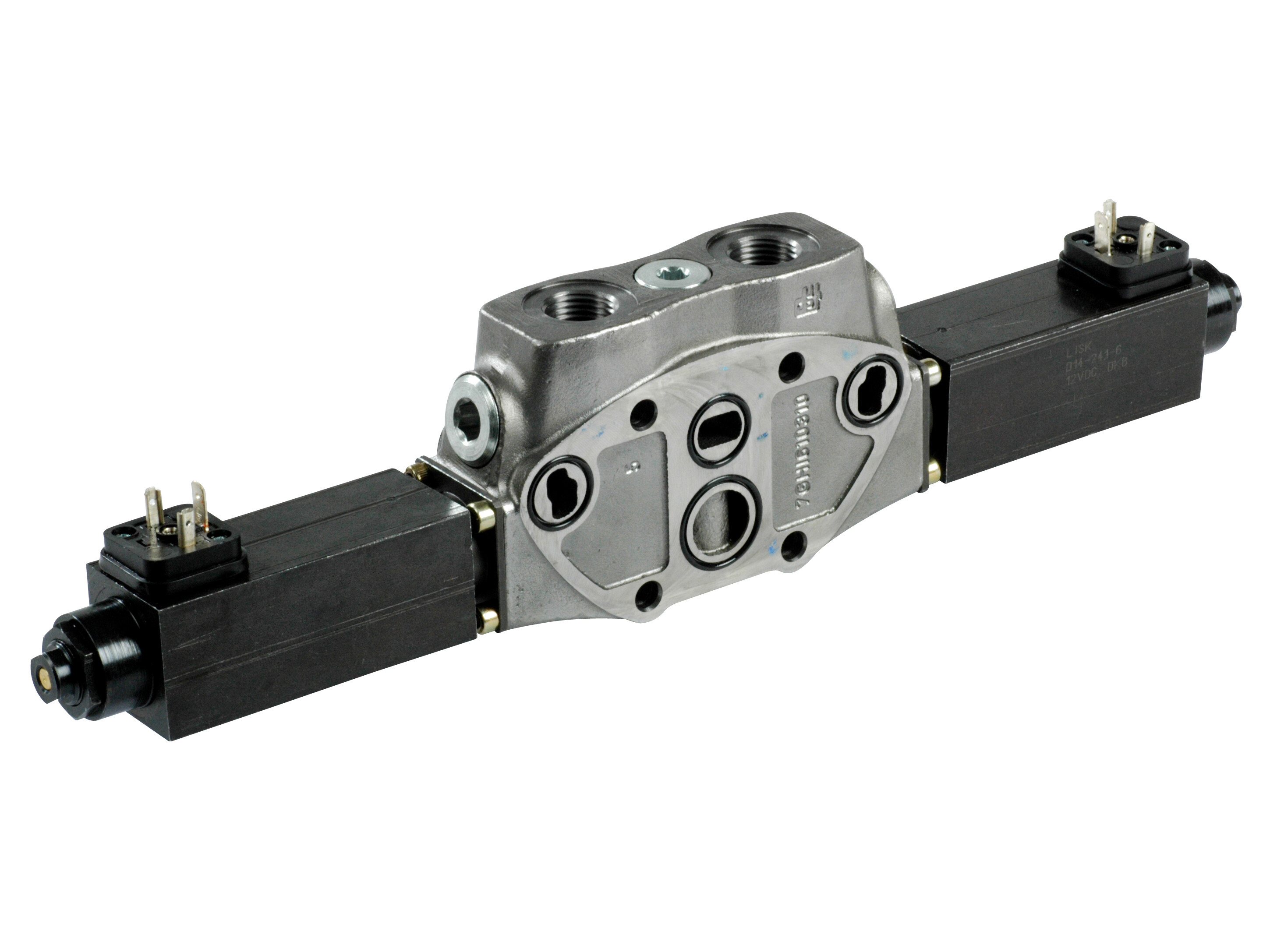 Komplet SD8 ventilelement (parallel) med: - dobbeltvirkende glider, A+B lukket i neutral,- fjedercentreret, - elektrisk aktivering.