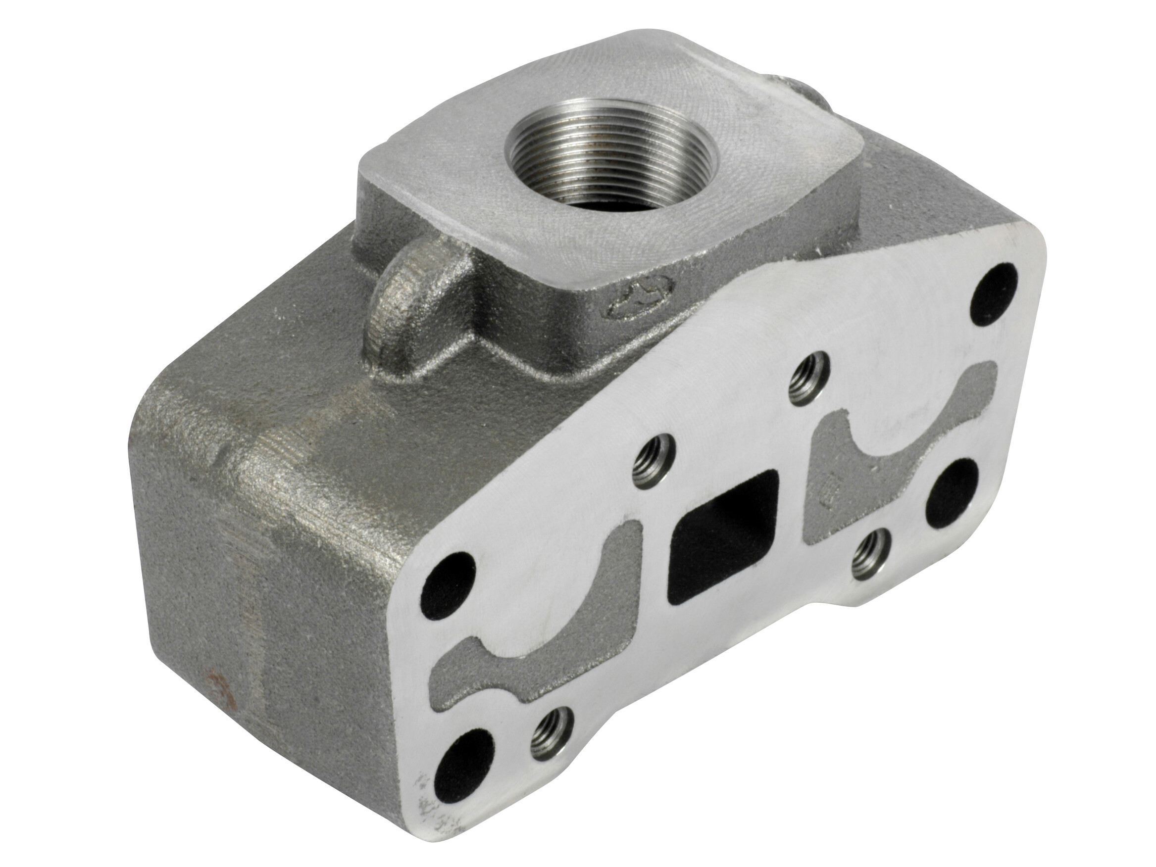 Mellemelement med fælles T-port for ventil med P-porte i både venstre og højre side. For opbygning af komplet ventil med 2 uafhængige kredse med fælles udgang.
