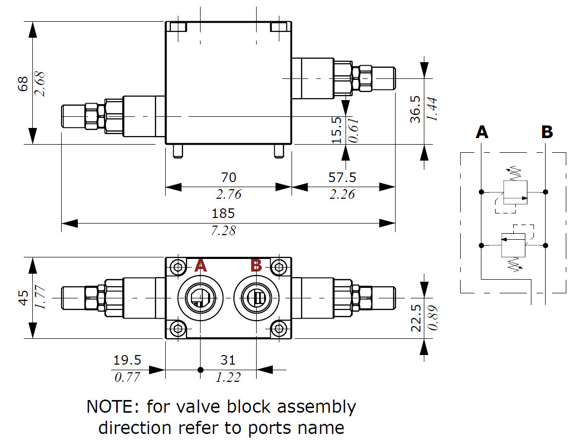 SDE030-060/BP3 ventil blok m. kontra ventiler på port A og B