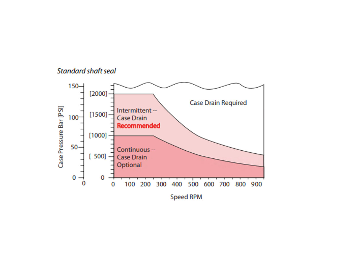 Motorerne kan køre kontinuerligt ved de angivne værdier; intermitterende drift bør ikke overstige 10 % af hvert minut. For at opnå maksimal levetid anbefales det at køre motoren ind ved cirka 30 % af det nominelle arbejdstryk i en time før fuld belastning. Tilslutning af drænledning anbefales ved drift under højt tryk eller ved høje temperaturer for at opretholde lavt hustryk og forlænge tætningens levetid.