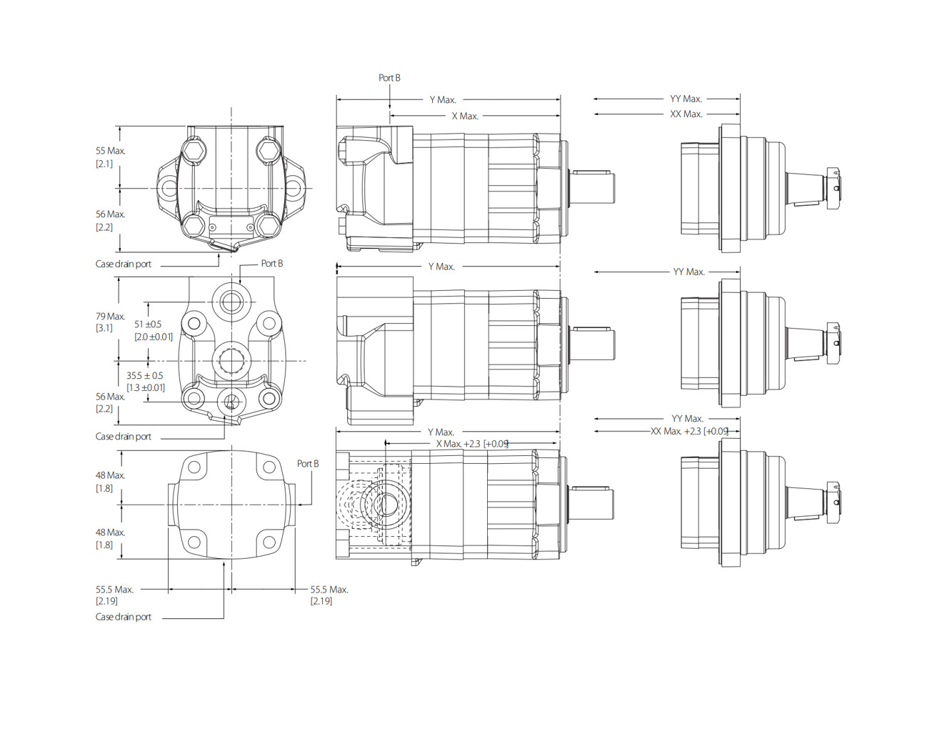 Hver motor i XL2-serien er udstyret med SAE A 2-bolts monteringsflange, G-gevindporte og et robust stålhus konstrueret til at opfylde krævende systembetingelser.