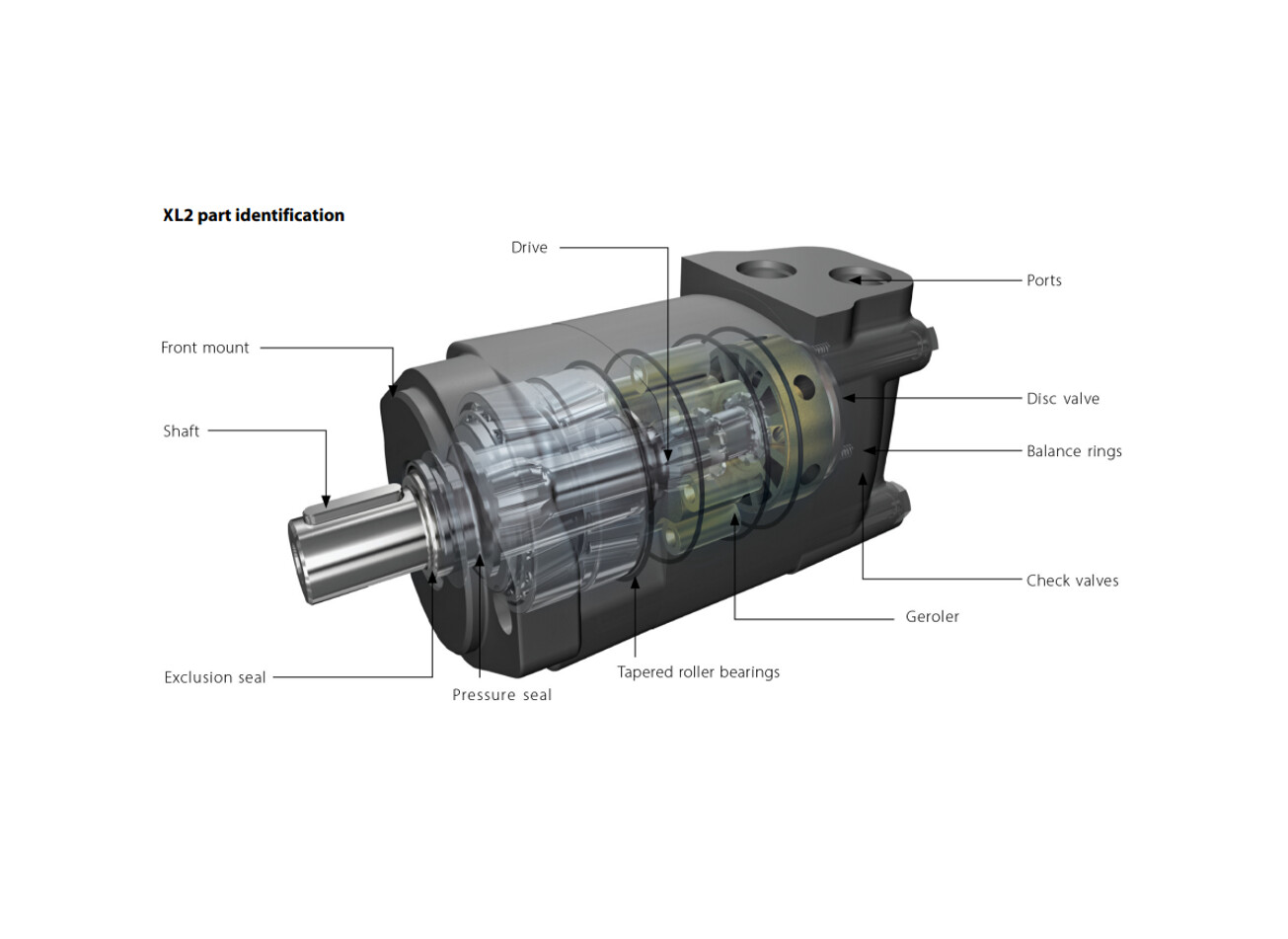 Danfoss XL2-serien er en del af Xcel™-familien af lavhastigheds, højmoment orbitmotorer og er udviklet til mellem­tunge mobile og industrielle applikationer, hvor der kræves pålideligt drejningsmoment og lang levetid. Serien er baseret på et skiveventilsystem med trezonet konstruktion, som sikrer jævn drift, høj virkningsgrad og stabil ydeevne under varierende belastninger. Præcisionsfremstillede lejer og optimerede flowkanaler giver konstant moment og lang holdbarhed i et kompakt design.