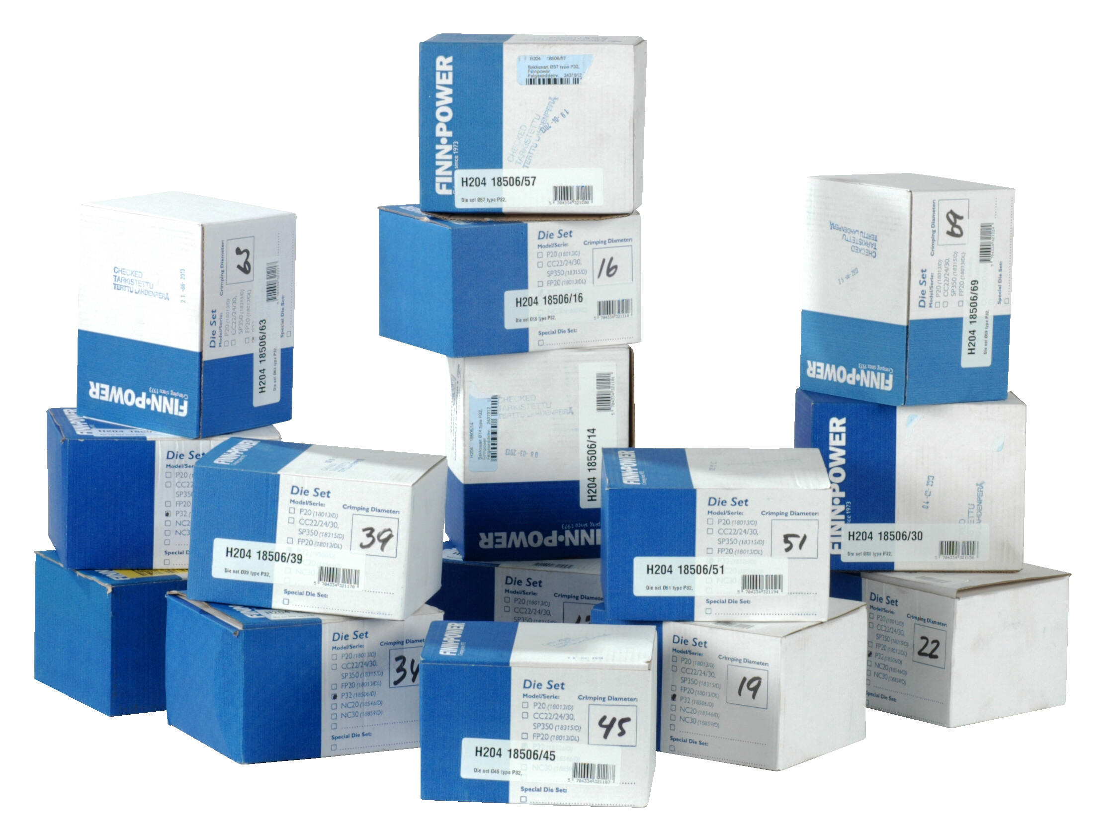 15 bakkesæt type P32 Ø10 til Ø69 Finnpower