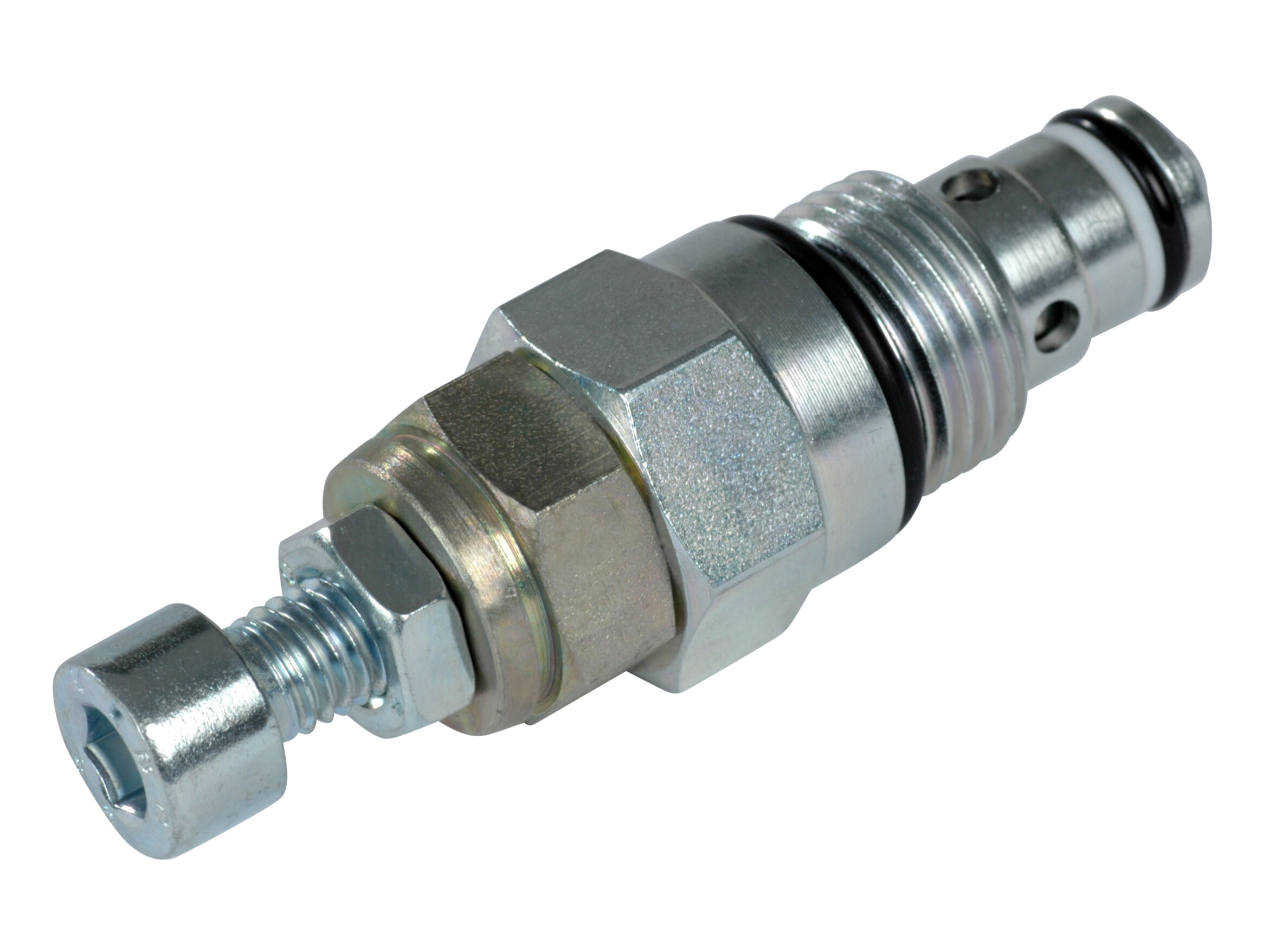 RV08-DR, Aflastningsventil, Direkte Virkende, Poppet Type med Dæmpning Dette er en direkte virkende, poppet-type aflastningsventil, der aflaster fra port 1 til 2. Den har en stærkt dæmpet poppet for en jævn og stabil respons. Den kan bruges som en omkostningseffektiv hovedaflastning eller til at beskytte en aktuator mod overtryk.