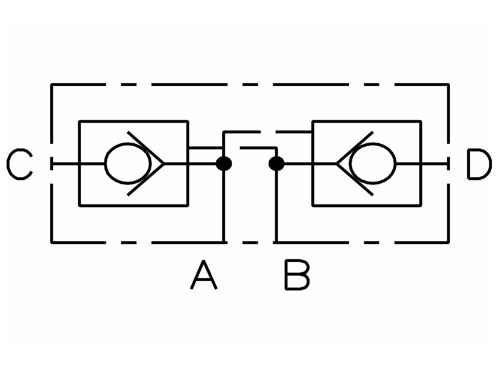 Dobbelt pilotstyret kontraventil ("låseventil"). Anvendes typisk til at "låse" en cylinder fast i en bestemt position.