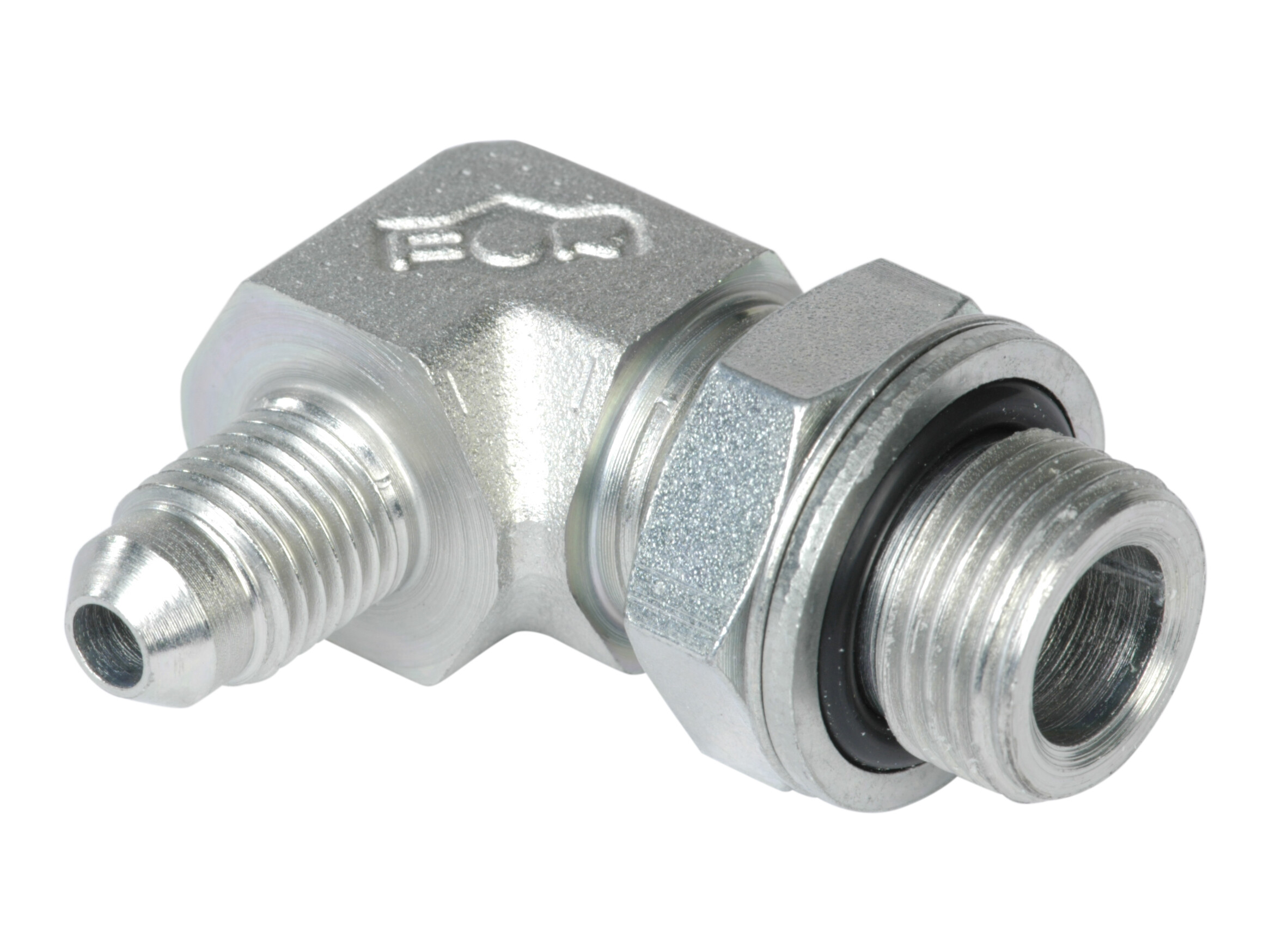 CO-06-3/8 - Vinkelindskruning 90 gr 7/16-20 JIC udv x 3/8 BSP udv