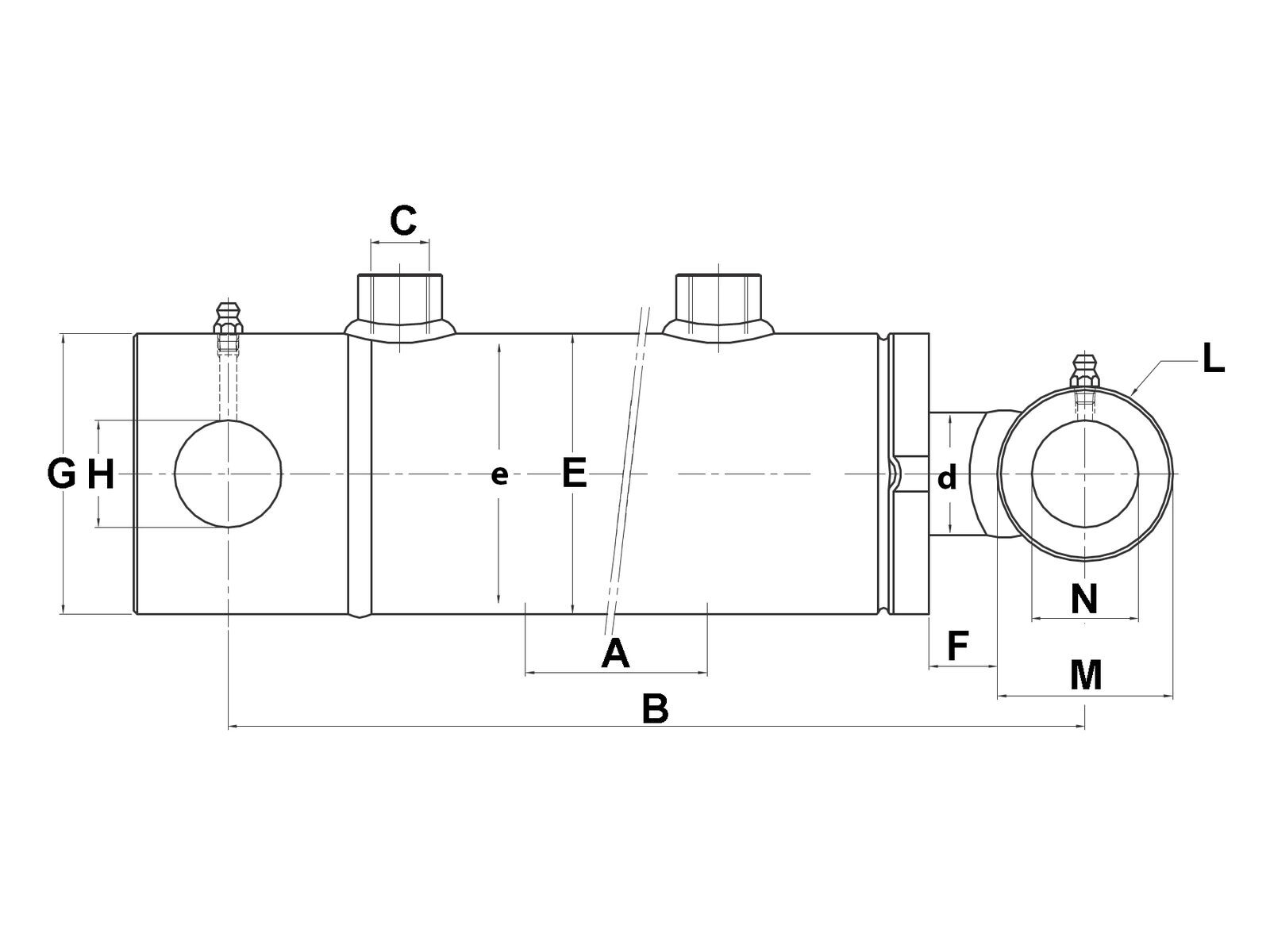 Materiale: - Cylinderrør: St52 H10. - Stempelstang: 20MnV6, krombelagt Ra 0,20. - Topmøtrik: Støbejern. - Svejst tilslutning: Stål.
