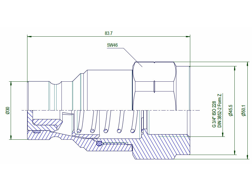 Lynkobling han flatface 3FFH (ISO16028) - DN20 - 3/4"BSP med