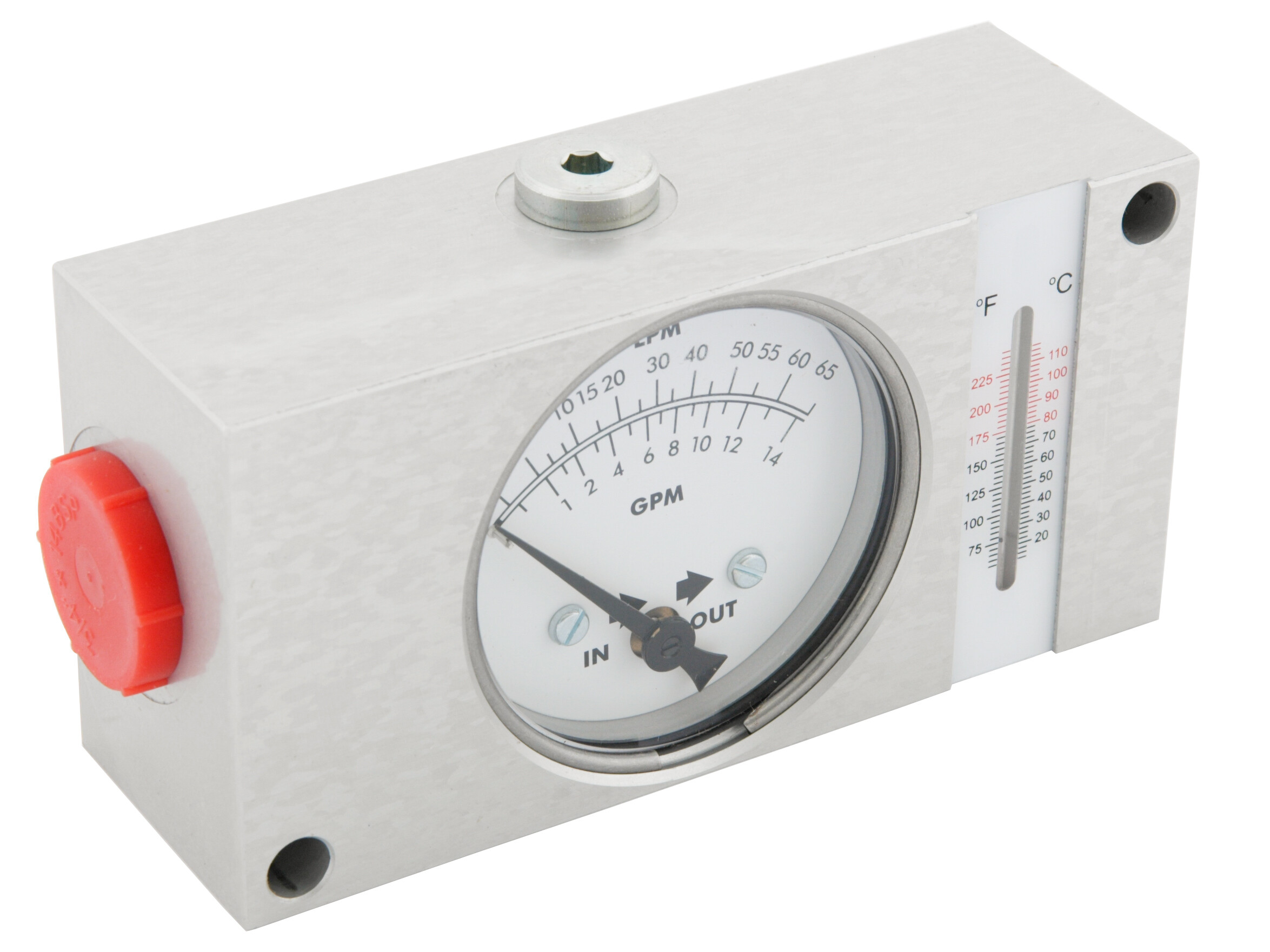 For ekstern beskyttelse er udlæningsskalaerne til både termometer og flow indikator undersænkede og beskyttede bag slagfast glas. Hele enheden er fuldt forseglet og ekstremt robust.