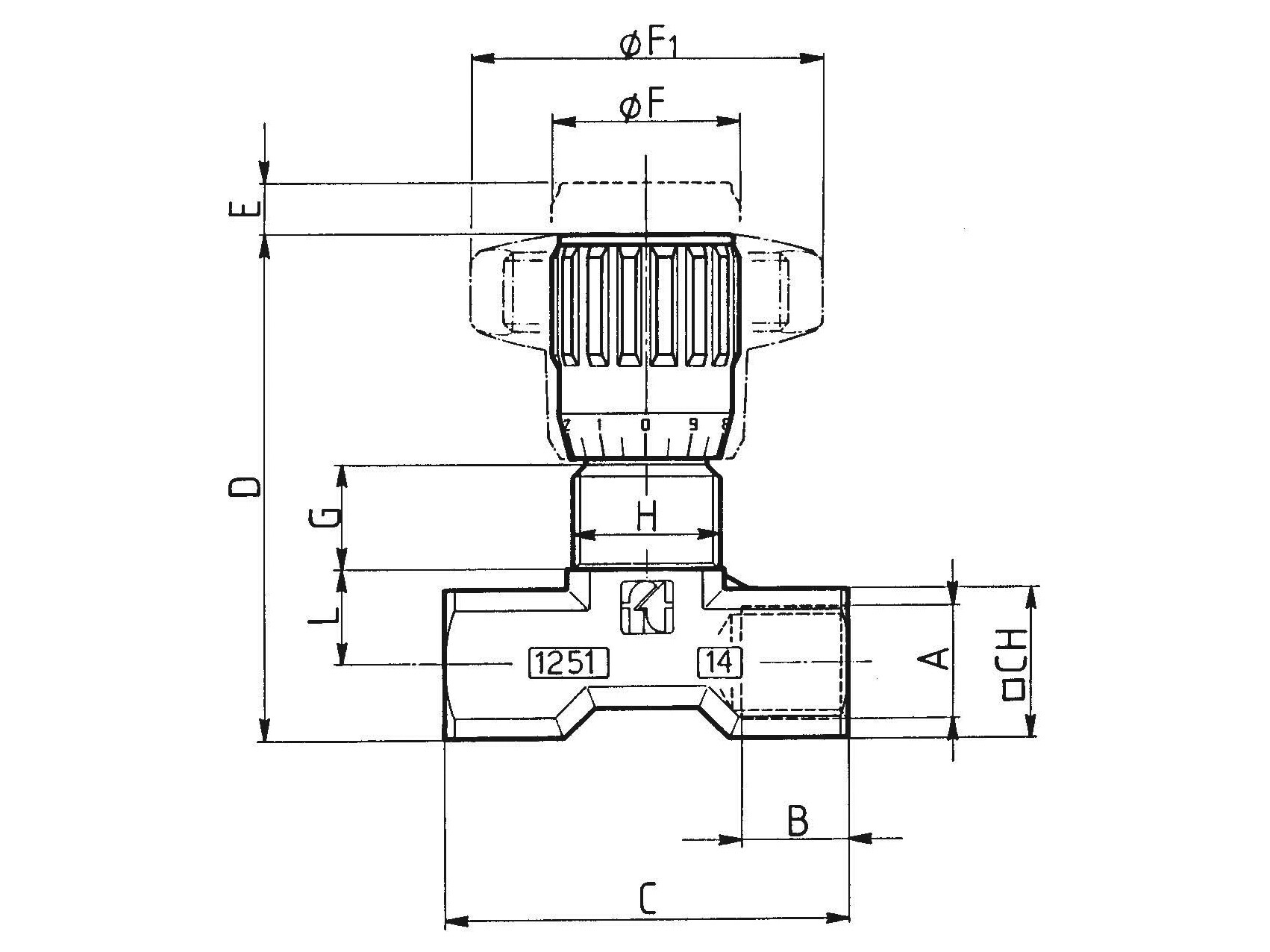 Mængdereguleringsventil med reguleret mængde i begge flowretninger. Reguleringshåndtag med indstillingsskala.