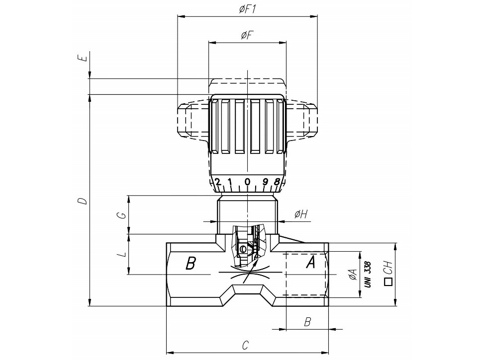Ventilhus: OT 58 - UNI 5705 Nikkel belagt.