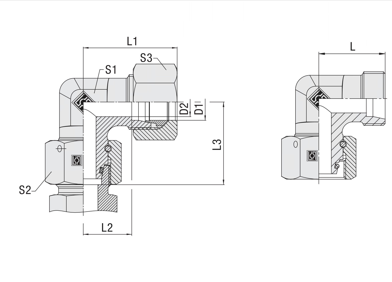 Vinkel 90° stilbar - ø6L - o-ringstætning