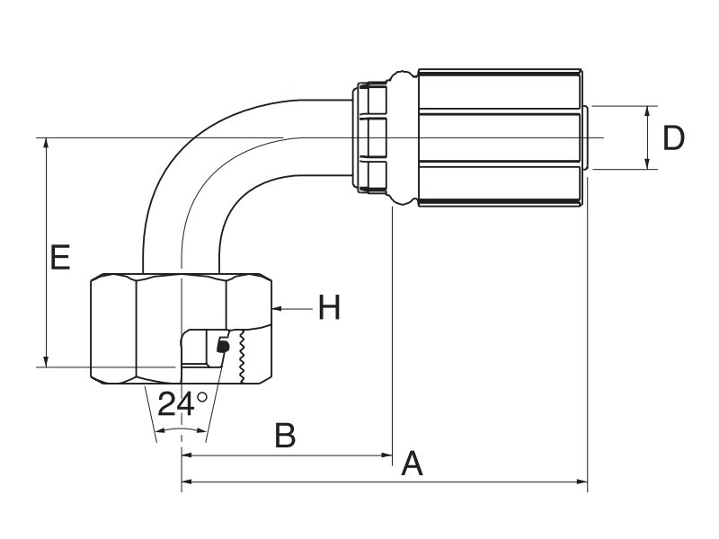 Kobling 5/16, M16x1,5 oml. 10L 5G-10FDLORX90 Gates MegaCrimp