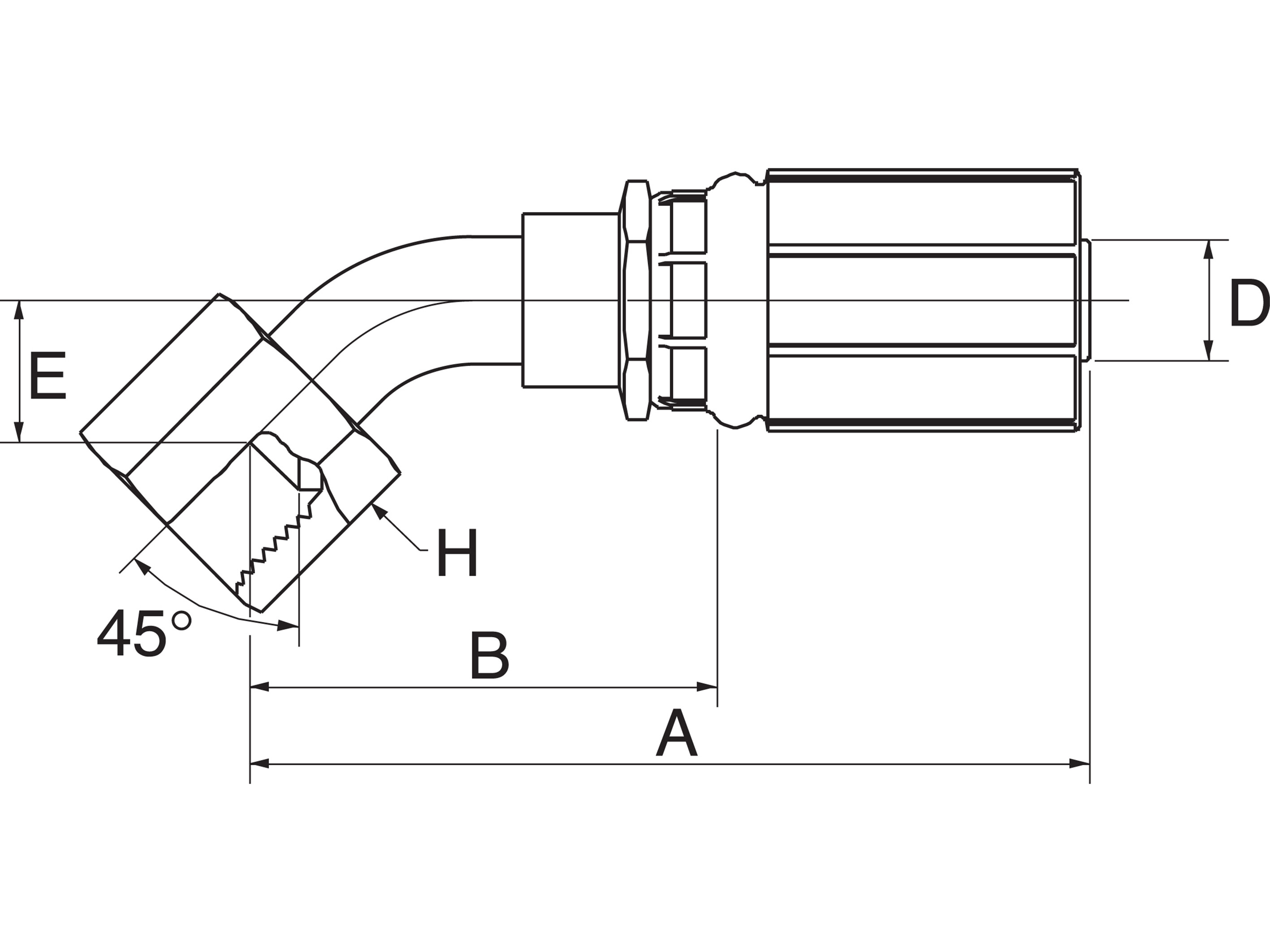 Tilslutning: Indvendigt SAE-gevind med 45° indadvendt konus.
