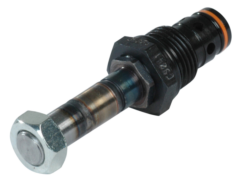 Når den ikke er spændingsført, holdes piloten væk fra dens sæde via en let fjeder, og poppet bevæger sig frit for at tillade flow fra sideporten til næseporten. Trykket på næseporten tvinger poppet til at lukke, hvilket kun giver begrænset flow.
