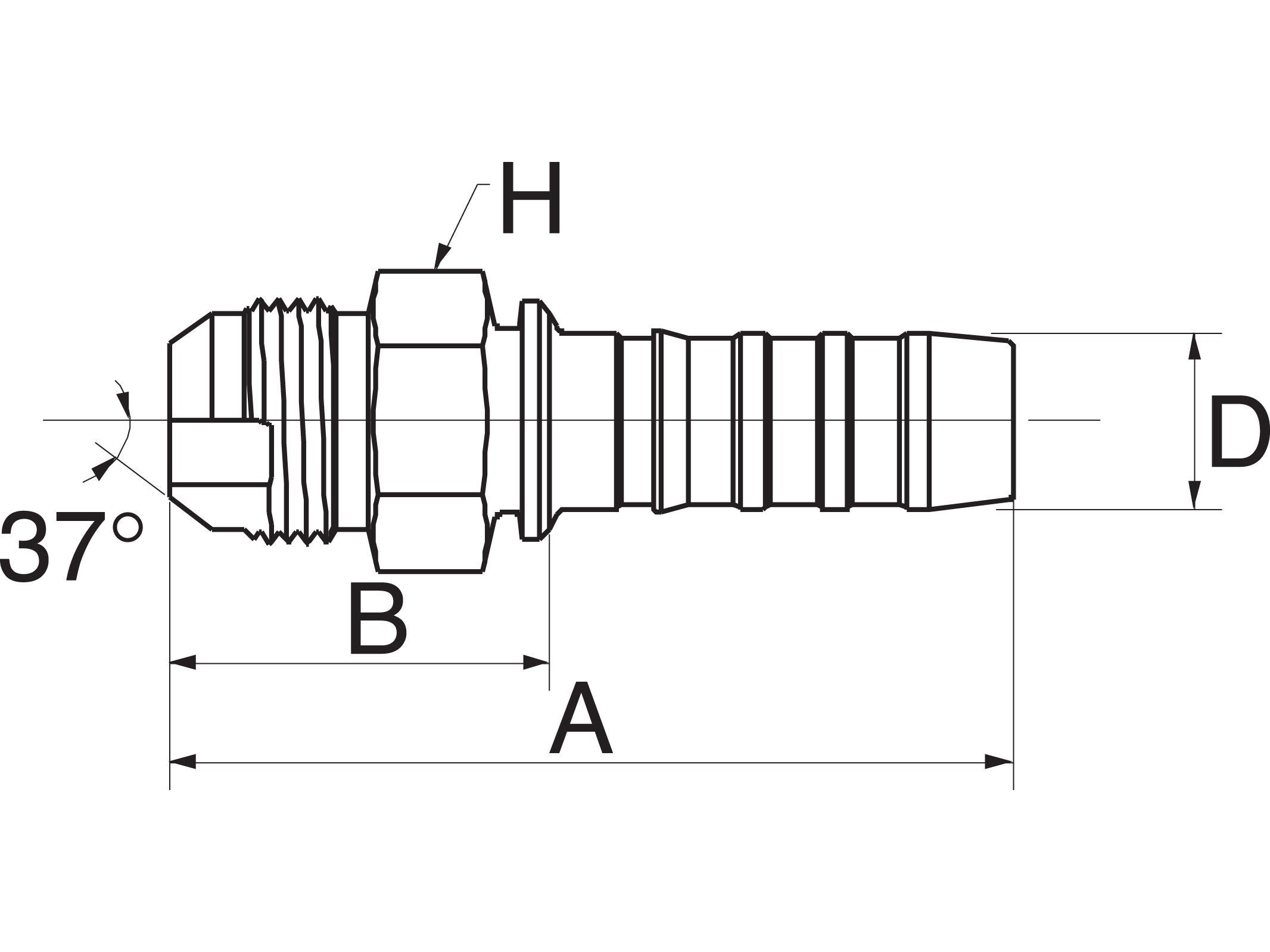 Tilslutning: Udvendigt JIC-gevind med 37° udadvendt konus.