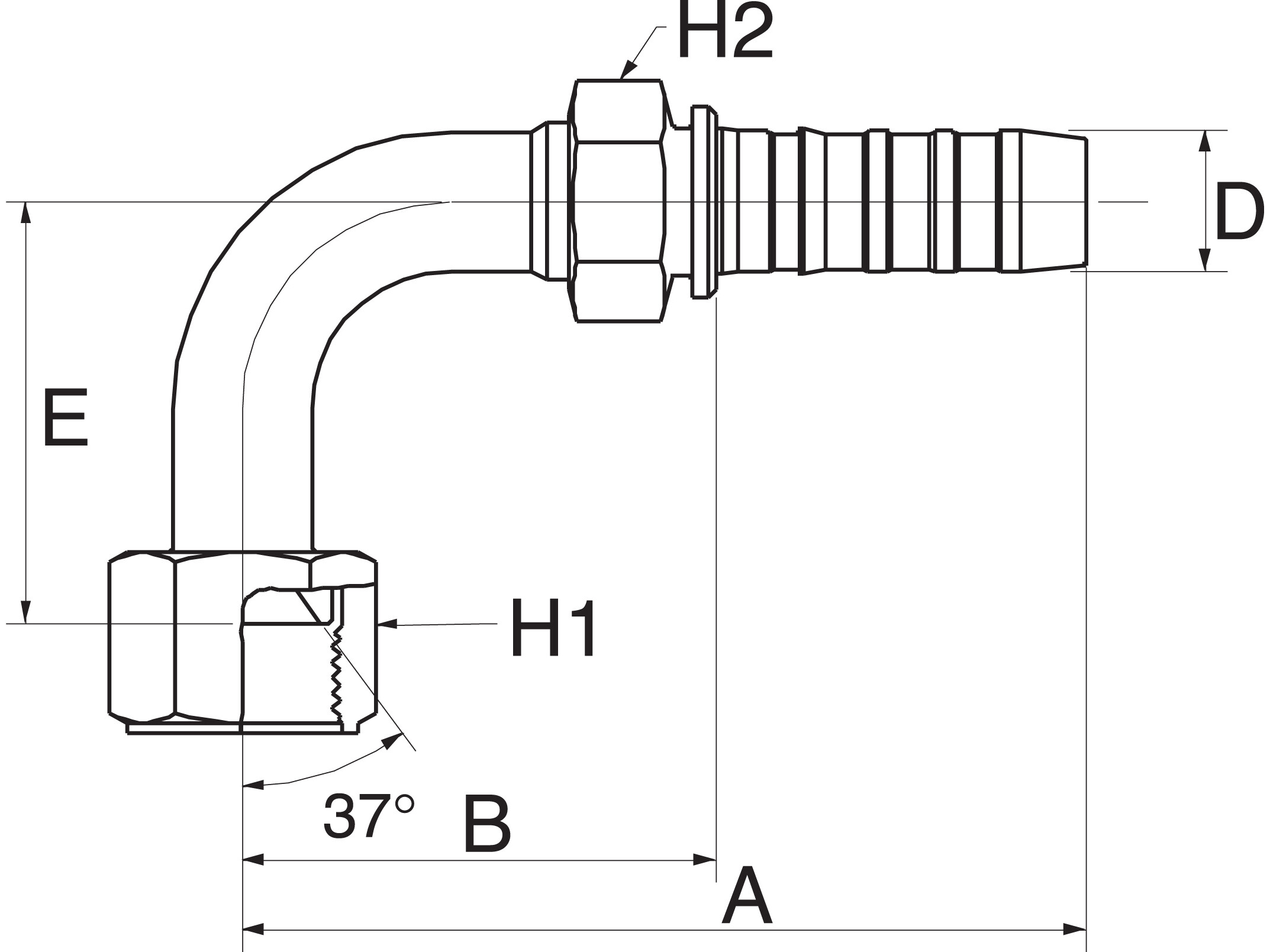 Tilslutning: Indvendigt JIC-gevind med 37° indadvendt konus.