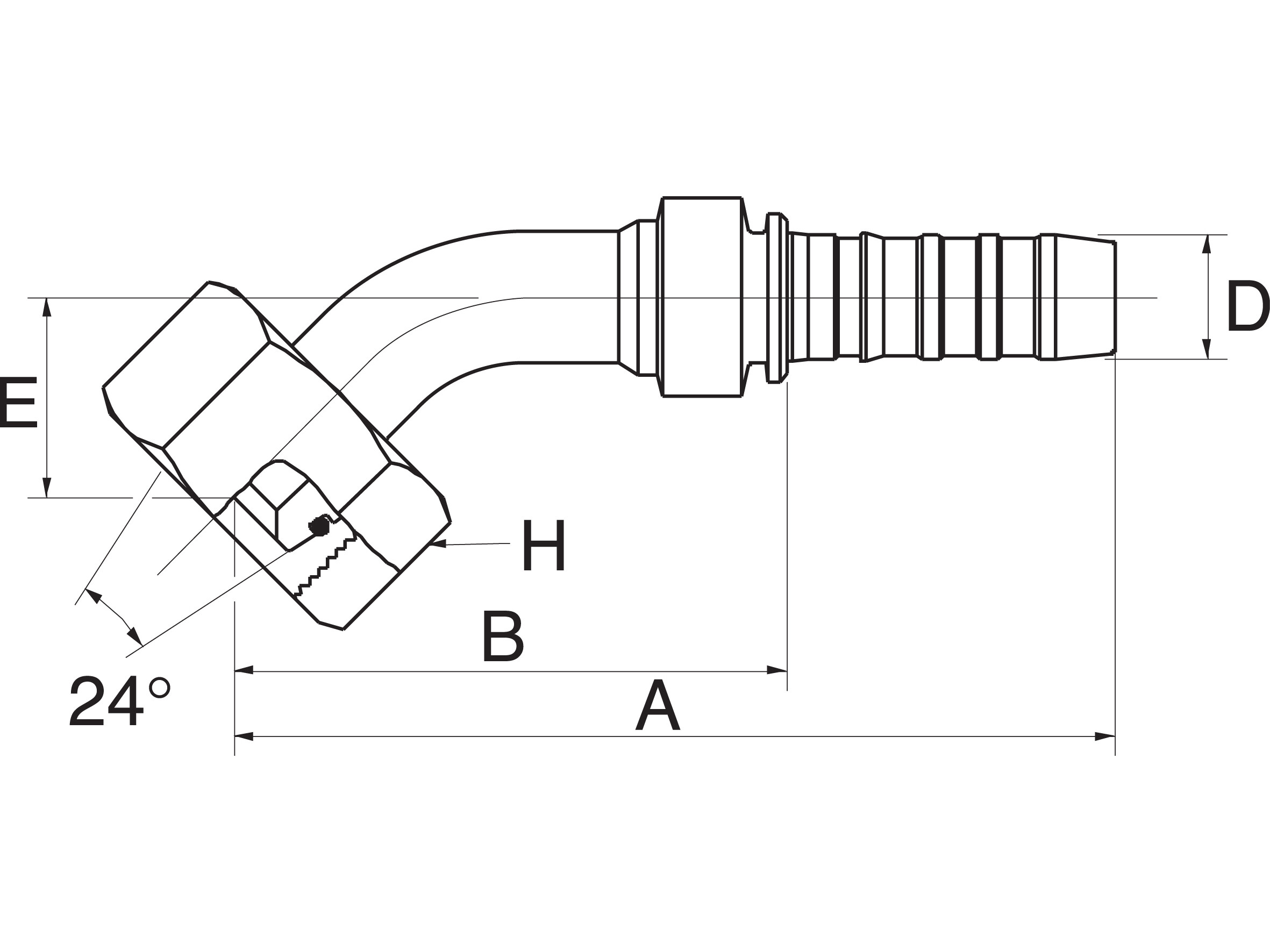 Tilslutning: Indvendigt MM-gevind med 24° udadvendt konus og o-ring.