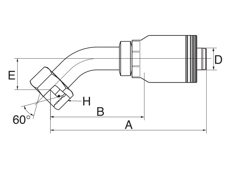 Tilslutning: Indvendigt BSP-gevind i omløber med 60° udadvendt konus.