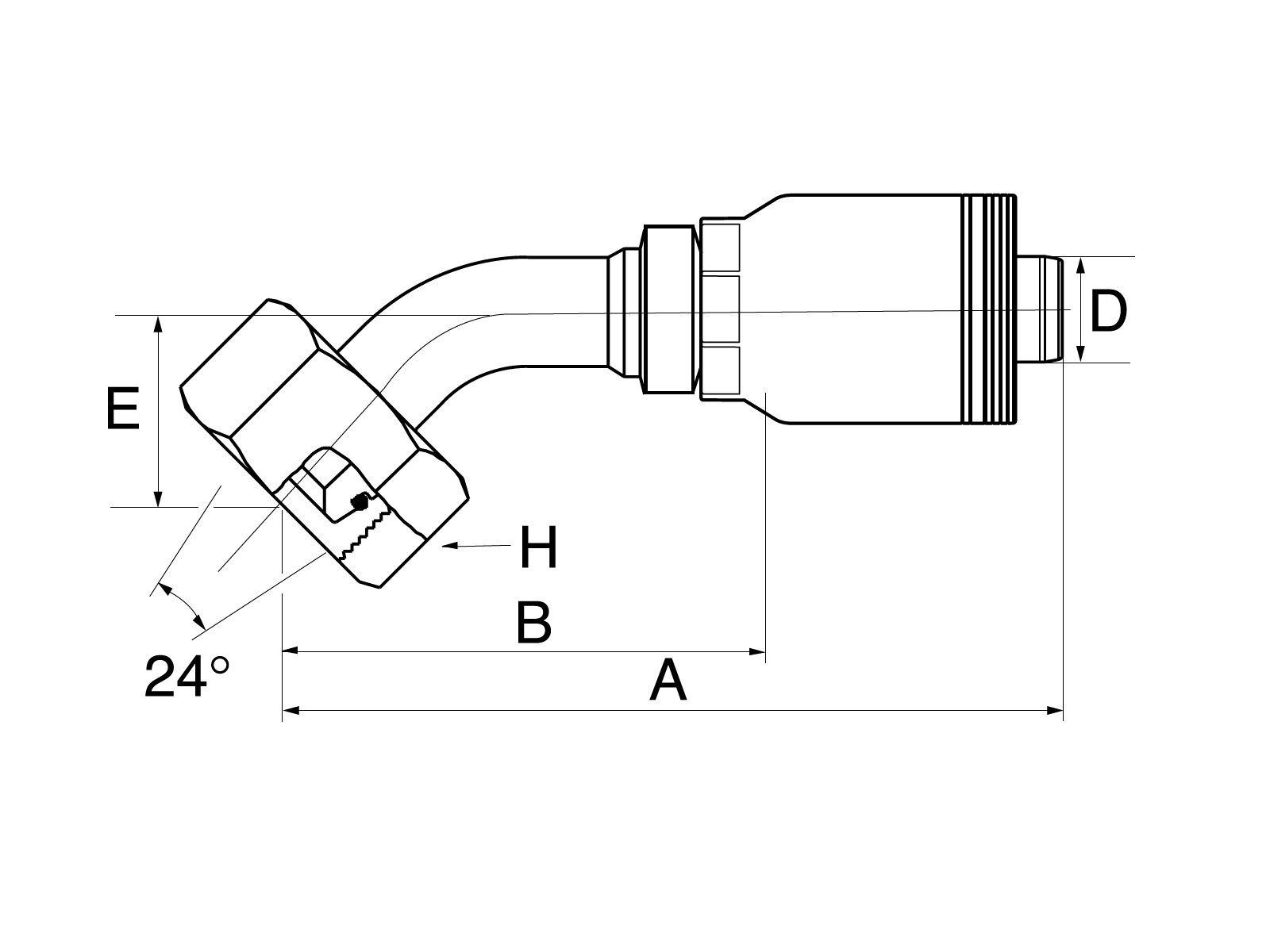Tilslutning: Indvendigt MM-gevind med 24° udadvendt konus og o-ring.