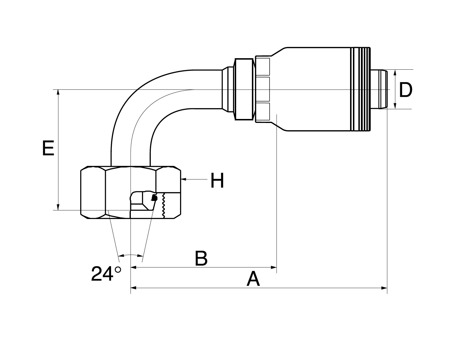 Tilslutning: Indvendigt MM-gevind med 24° udadvendt konus og o-ring.