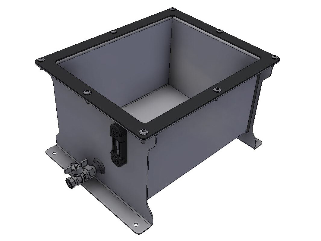 Leveres inklusiv pakning, bolte og møtrikker, oliestandglas samt aftapningshane. Sandblæst og malet med oliebestandig primer. Volumen regnes fra indvendig bund til midt i øverste bolt i oliestandsglasset.