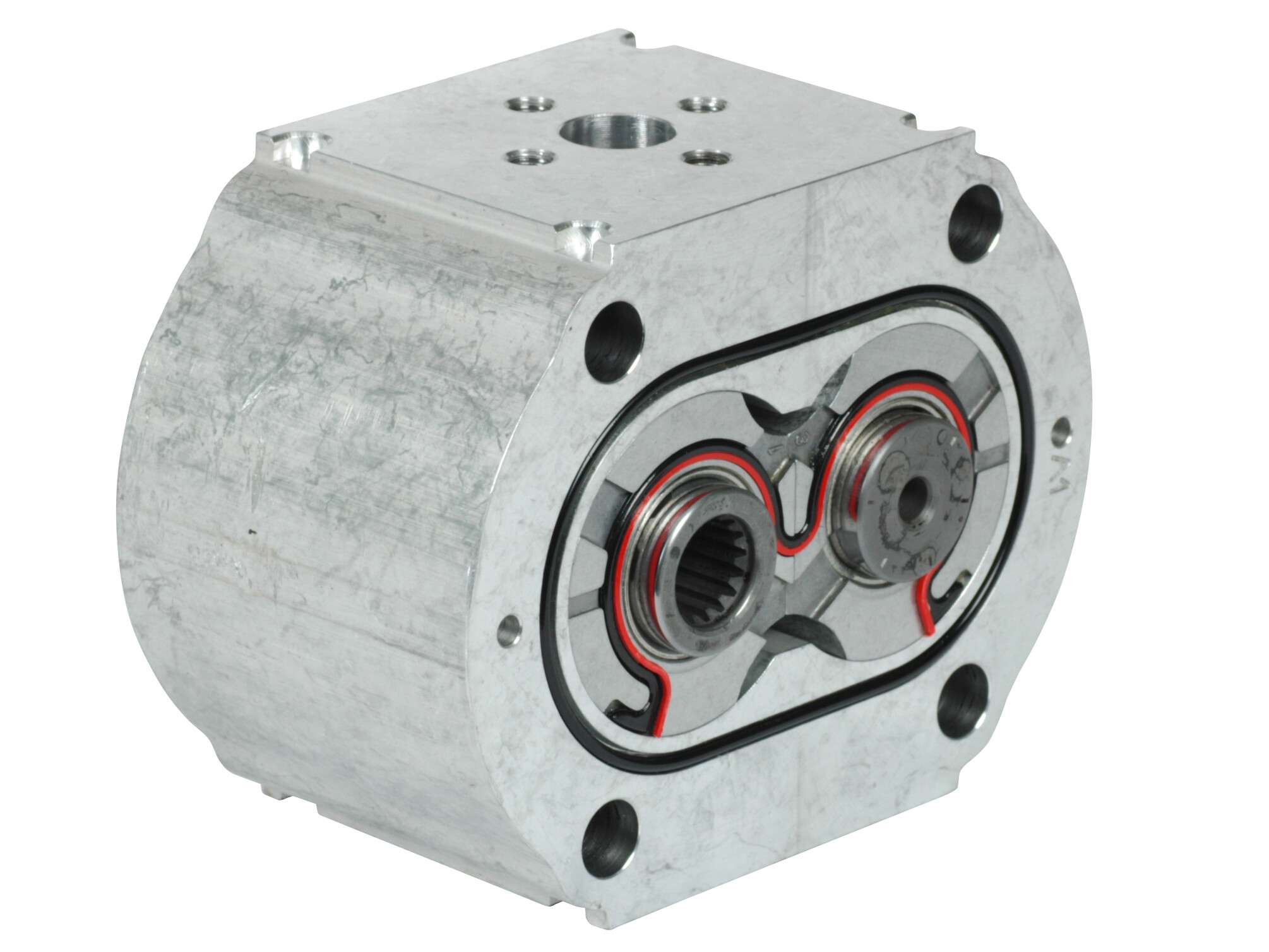 Casappa gruppe 3 mellemsektion for opbygning af tandhjuls multipumpe. Kan anvendes både som mellempumpe eller som bageste pumpe ved 2 eller flere sammenbyggede pumper.