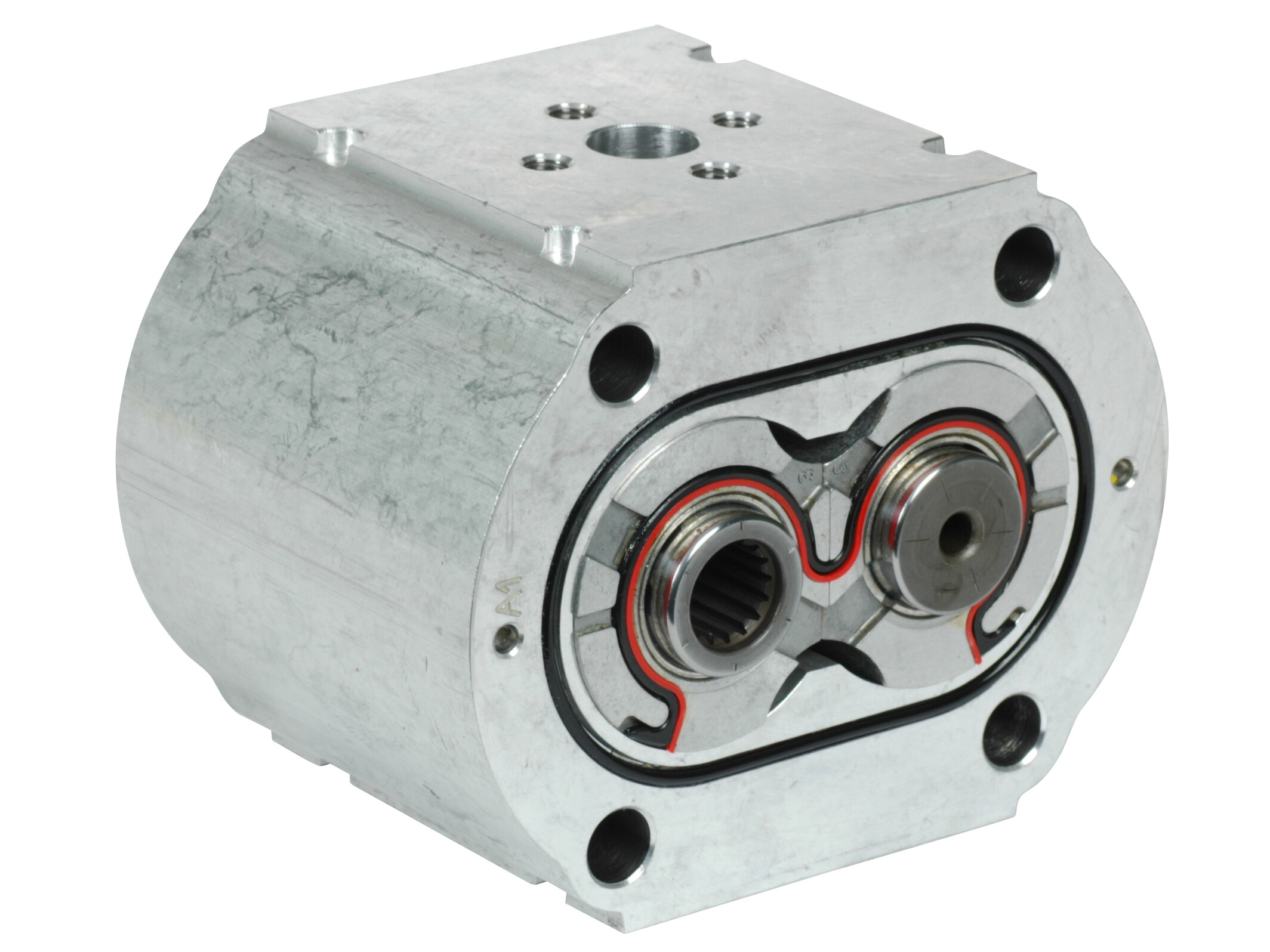 Casappa gruppe 3 mellemsektion for opbygning af tandhjuls multipumpe. Kan anvendes både som mellempumpe eller som bageste pumpe ved 2 eller flere sammenbyggede pumper.