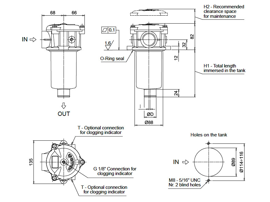 Returfilter 60lpm 3/4" m60my MPF100-1-A-G2-M60-N-B-T