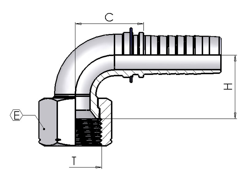 Tilslutning: Indvendigt JIC-gevind med 37° indadvendt konus.