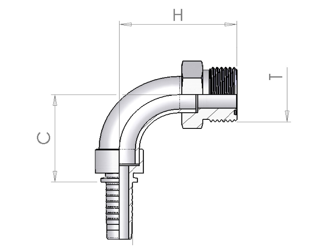 Tilslutning: Udvendigt ORFS-gevind med flad pakflade og o-ring.