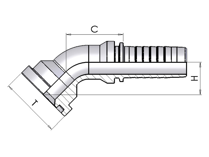 1.1/4" Indstik - 1.1/2" SAE6000 flange - 45°