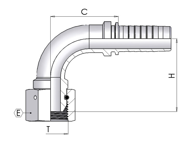 Tilslutning: Indvendigt BSP-gevind i omløber med 60° udadvendt konus.