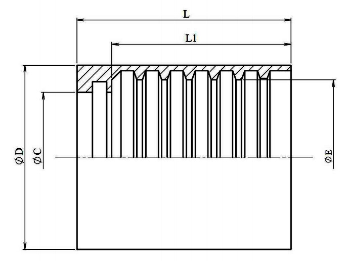 3/8" hylse for korrugeret PTFE - AISI316-L