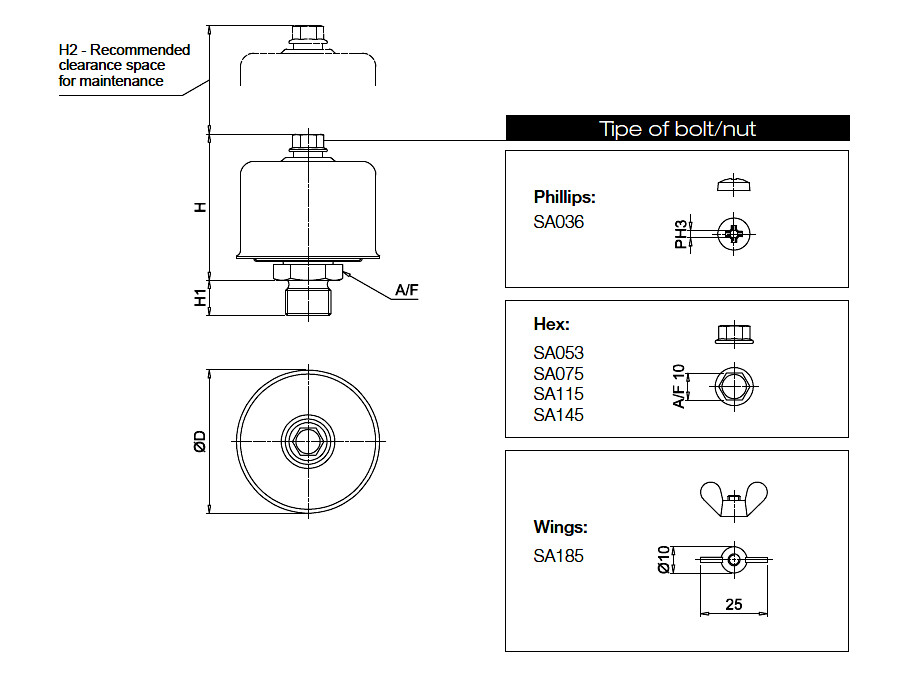 Påfyldningsprop til G-Tank og D-Tank horisontal
