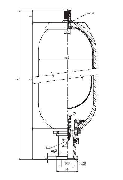 Blære akkumulator - 4:1 - 360 bar - 2" BSP - 9.1 LTR