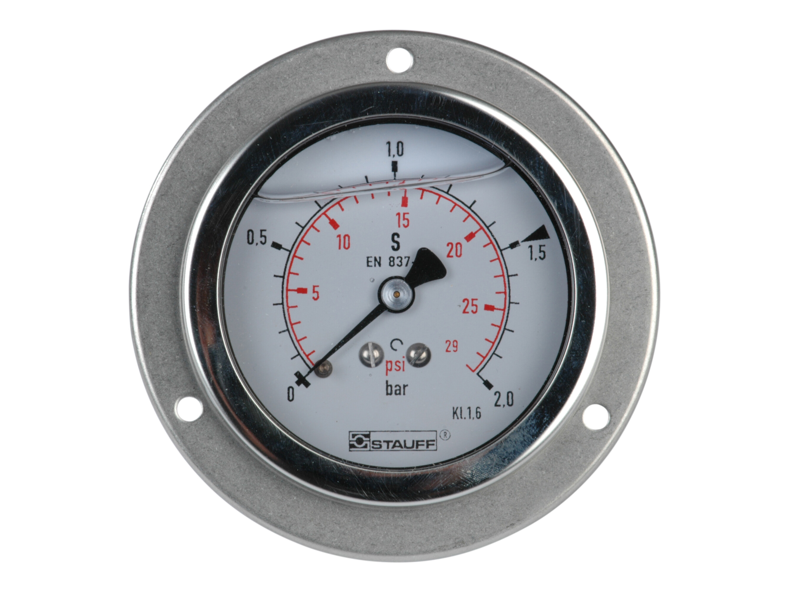 SPG063-002RF - 1/4" manometer. Studs bagud med frontring. Skala 0-2.5 bar