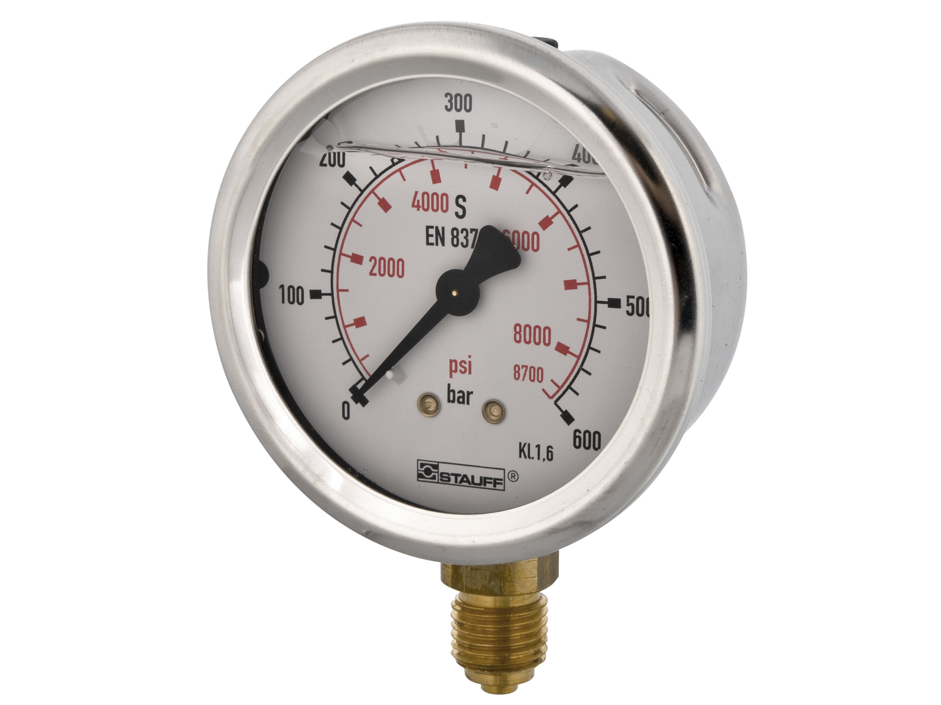 SPG063-600SB - 1/4" manometer. Studs ned. Skala 0-600 bar