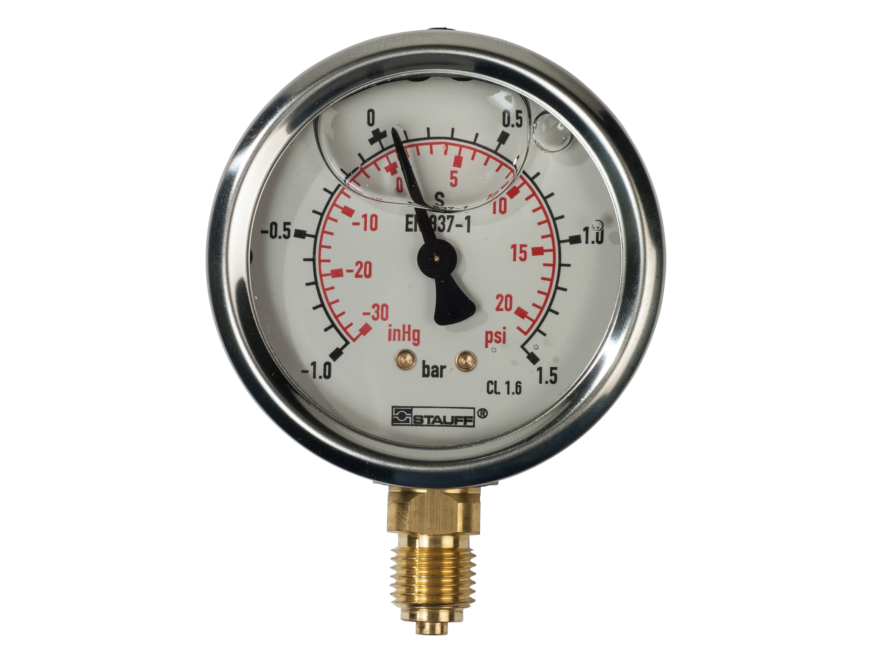 Standard med dobbeltskala med inddeling i bar og PSI.