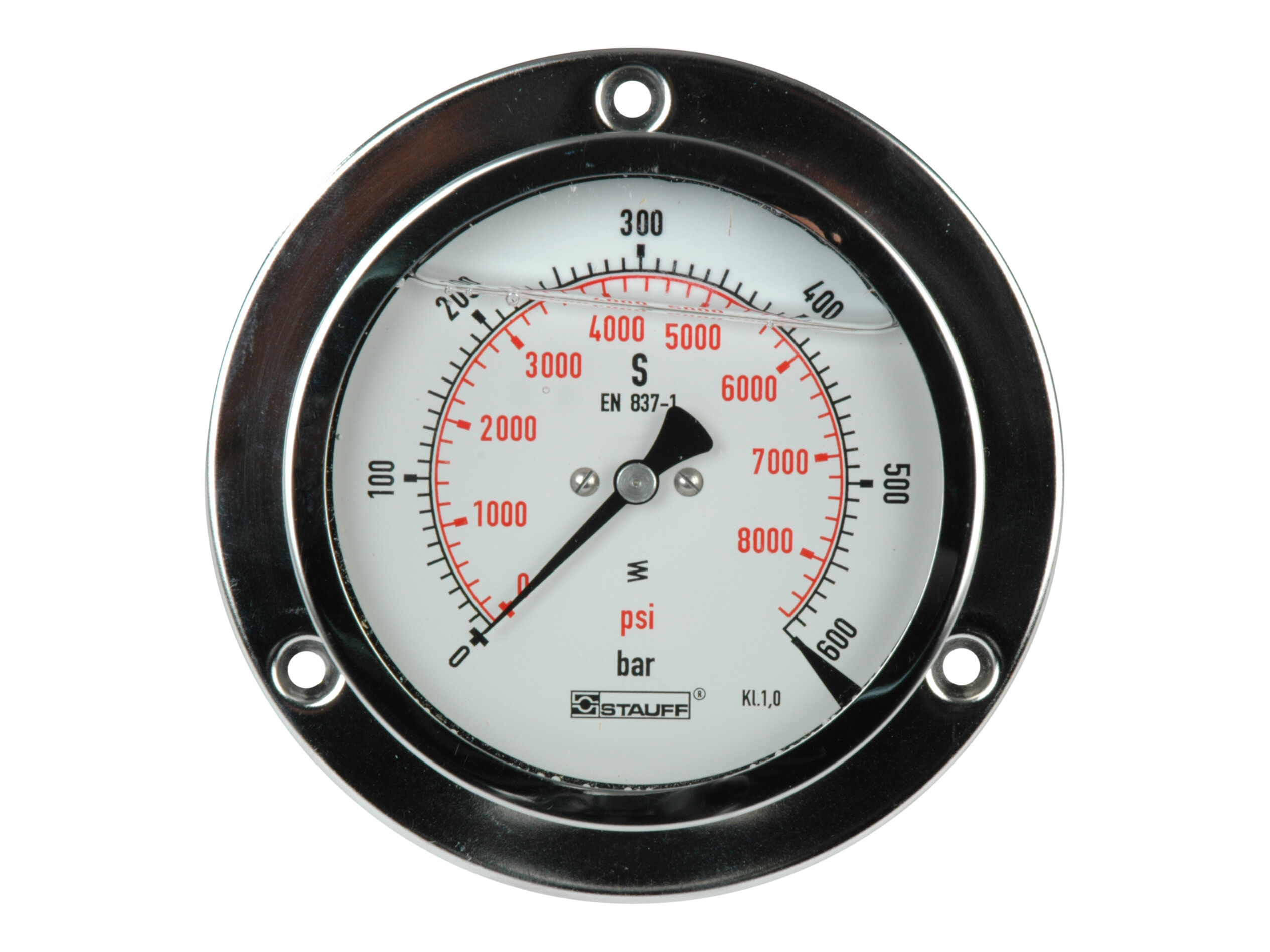 Standard med dobbeltskala med inddeling i bar og PSI.