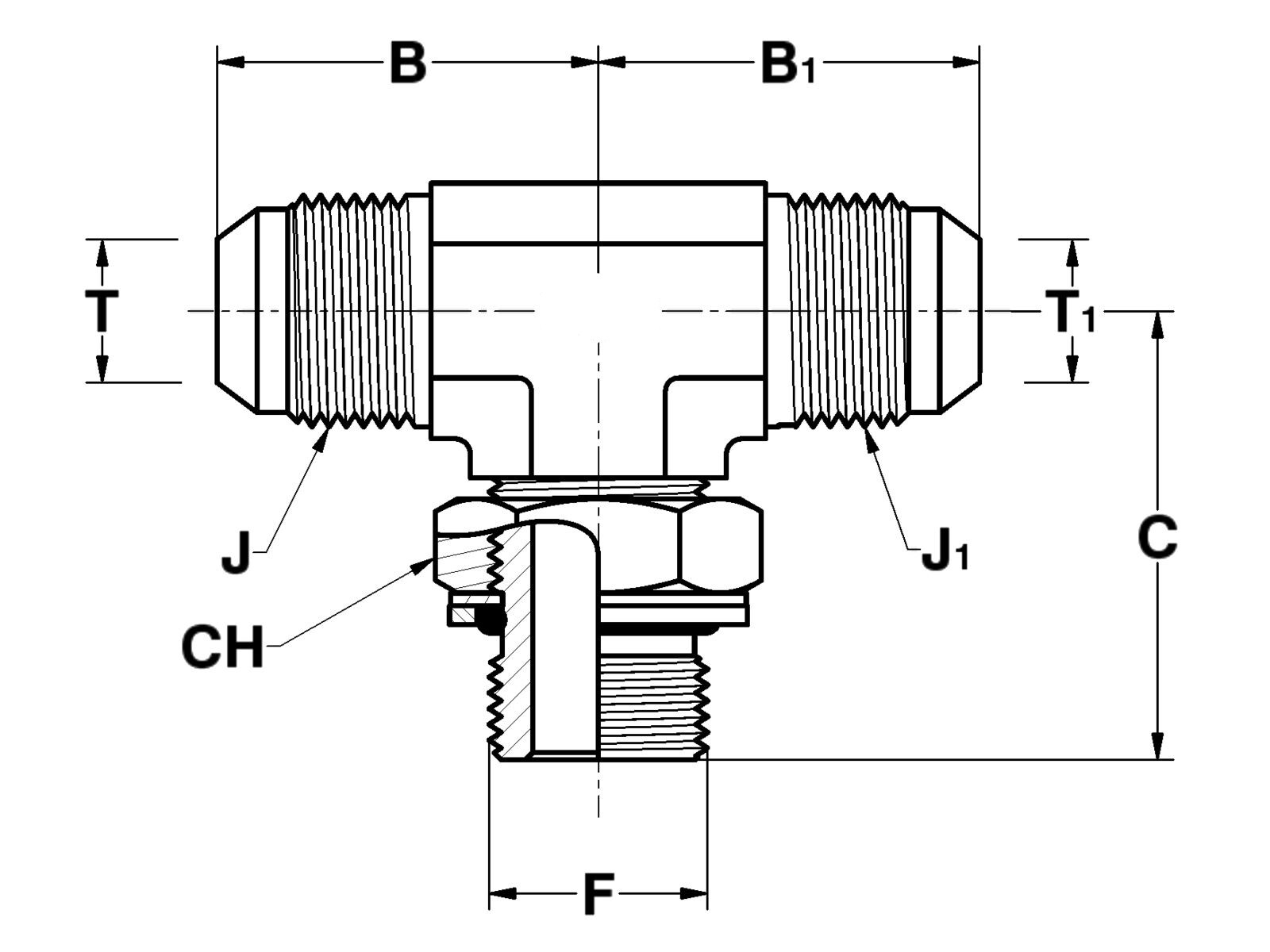 T-forskruning stilbar 1.5/8-12 JIC udv x 1.1/4 BSP udv