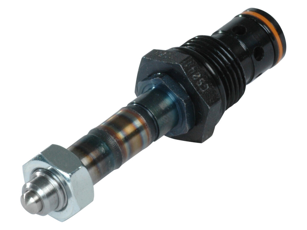 Når den ikke er spændingsført, holdes piloten væk fra dens sæde via en let fjeder, og poppet bevæger sig frit for at tillade flow fra sideporten til næseporten. Trykket på næseporten tvinger poppet til at lukke, hvilket kun giver begrænset flow.