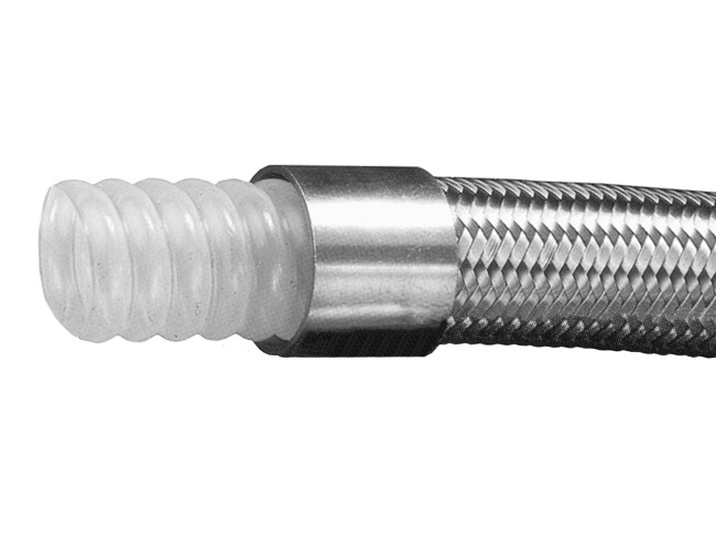 Area of application: Chemicals, steam, gases, oil. Not suitable for halogens and their acids and wet alkali metals. Temperature range: -60 ° C to + 260 ° C. Material: Inner tube of PTFE and external stainless steel braid of type 304. Can be delivered in antistatic design. Contact us regarding couplings and sleeves. PTFE hose is normally delivered in adapted lengths with mounted couplings. Pressure testing and marking can be performed as needed. Pressure testing certificates can, if required, be supplied with the hoses.